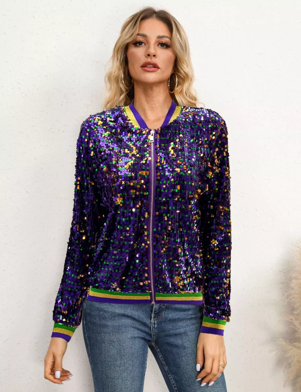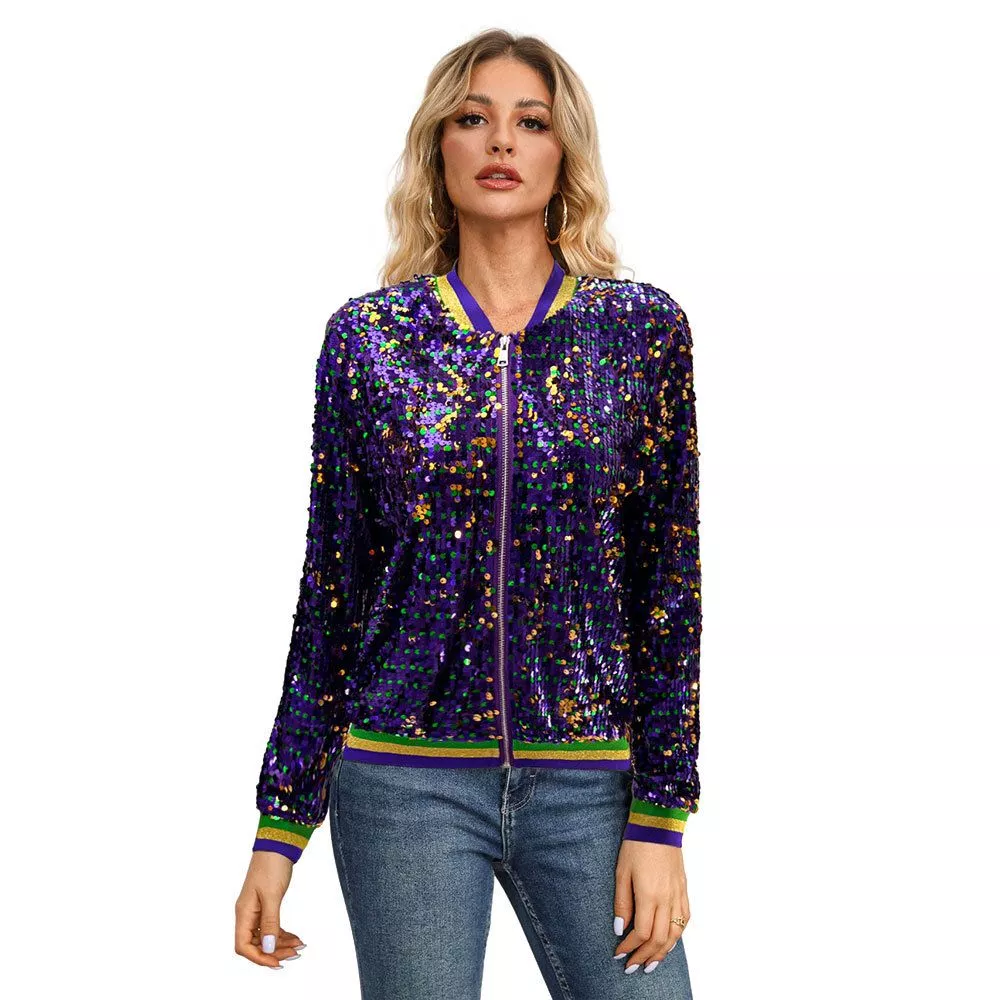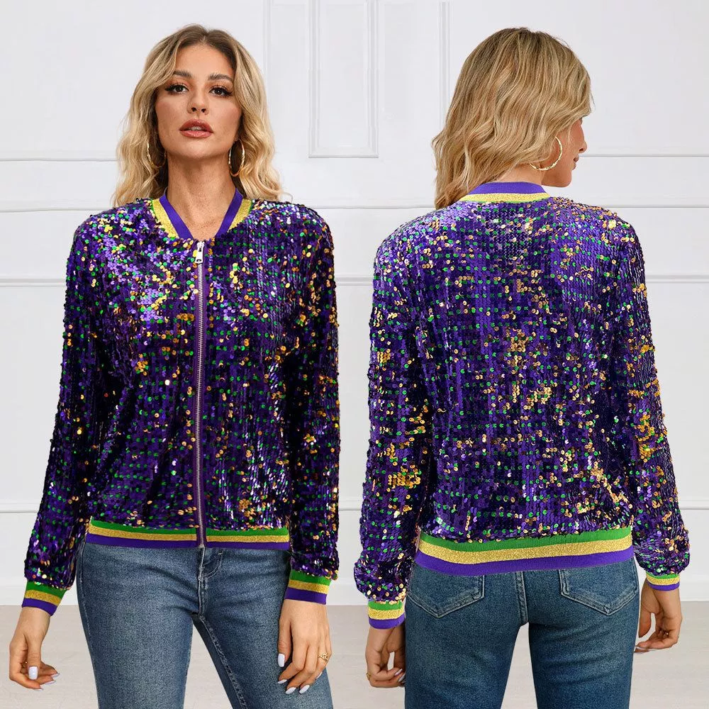 Giubbino Donna Giacca Corto Viola Oro Strass Pailette Collage 89892