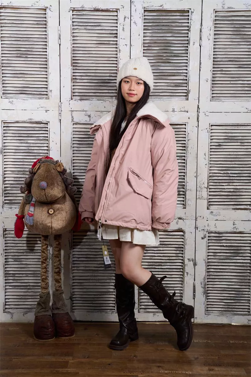 Un capo dal fascino moderno e raffinato: questo giubbotto corto imbottito con collo in pelliccia morbida unisce calore e femminilità in un design pratico e chic.