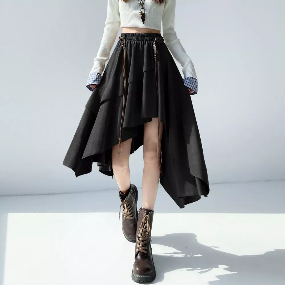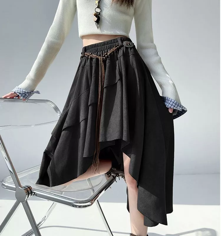✨ Dettagli Tecnici 👗 Modello: Gonna lunga con taglio asimmetrico e balze sovrapposte