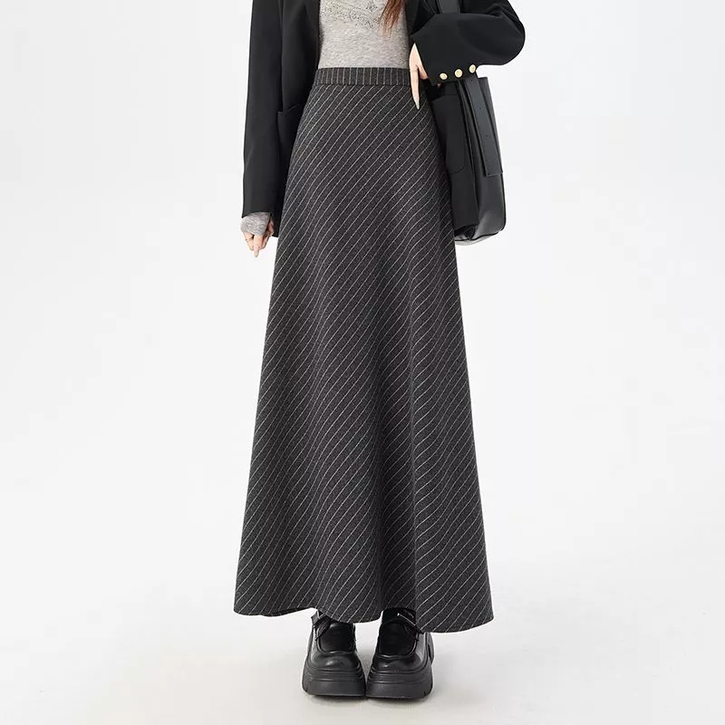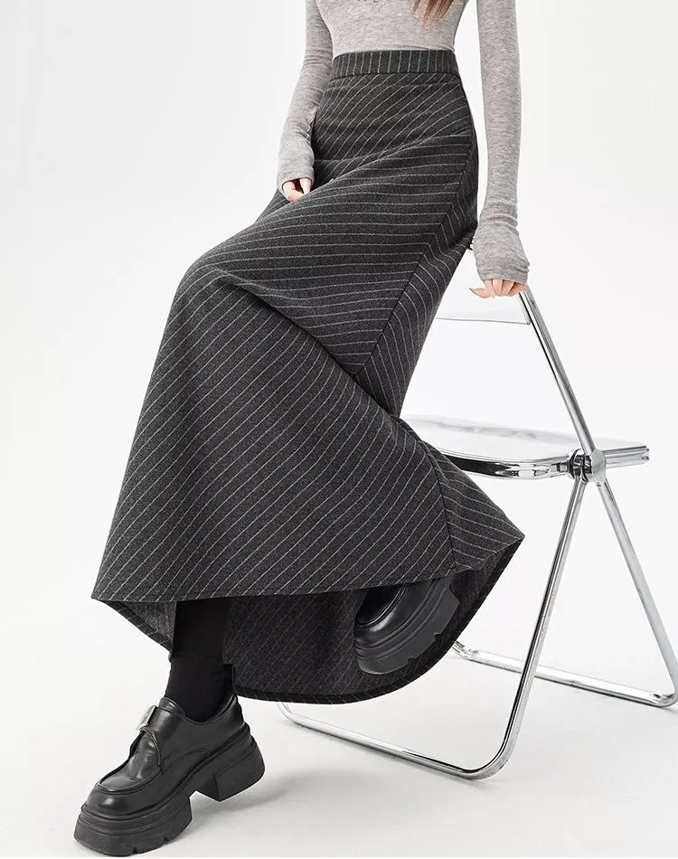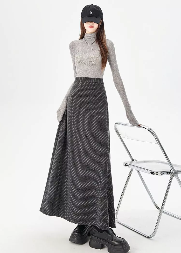 Gonna Lunga A Trapezio In Tessuto Morbido Grigio Elegante Casual Chic CF56758