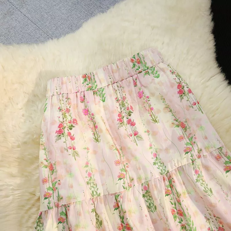 Gonna lunga da donna dallo stile femminile e romantico, ideale per creare look freschi e curati nelle giornate più calde. La stampa floreale su base rosa dona luminosità al capo e lo rende perfetto per outfit delicati, facili da abbinare sia con top semplici che con bluse più eleganti.