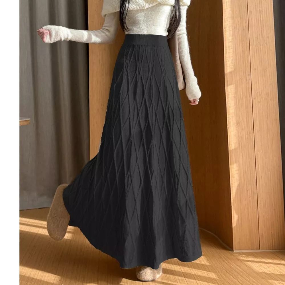 Gonna lunga donna dal design essenziale e raffinato, caratterizzata da una silhouette a linea A che accompagna il movimento con naturalezza. Il tessuto presenta una lavorazione testurizzata a motivo geometrico irregolare, che dona profondità visiva al capo mantenendo uno stile pulito ed elegante. La vita è elasticizzata e ben definita, pensata per garantire comfort e vestibilità adattabile. Un modello versatile, ideale per look quotidiani curati, perfetto da abbinare a maglieria morbida, top aderenti o camicie per outfit equilibrati e femminili.