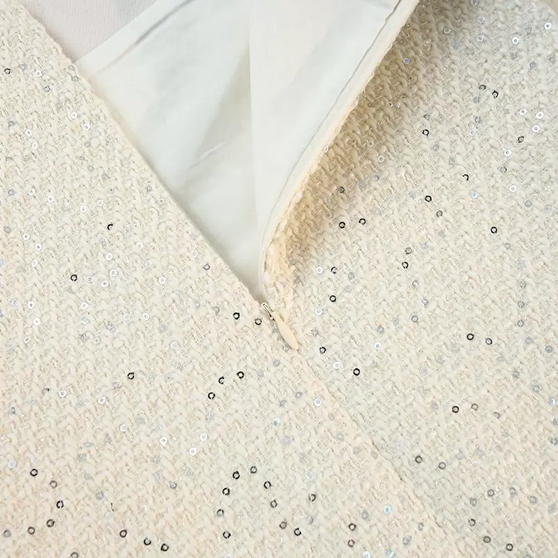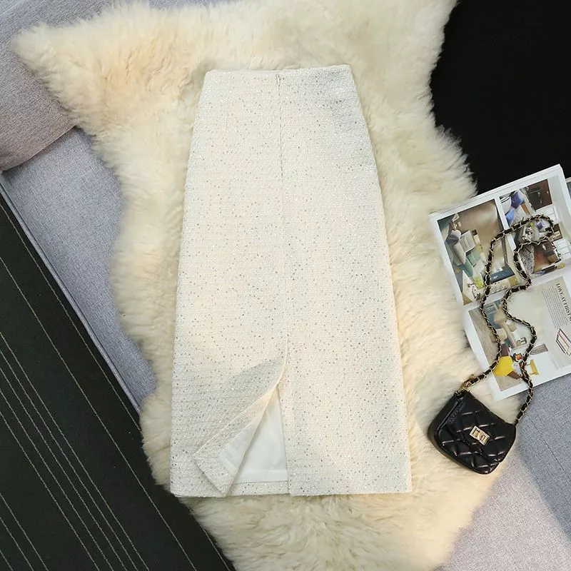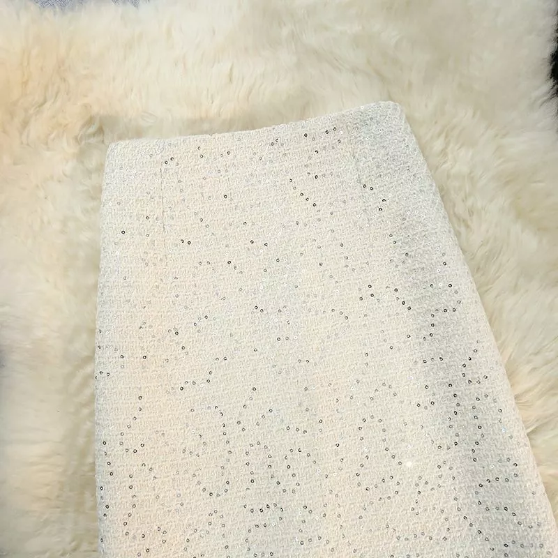Gonna Lunga Elegante Bianca Jacquard Vita Alta Con Paillettes Chic CF54266
