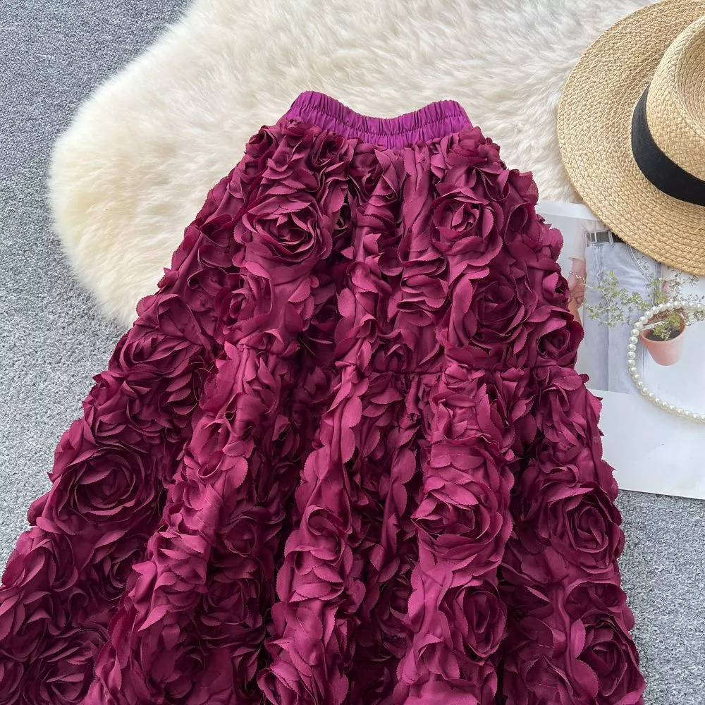 Gonna Lunga Rosso Vino Rose 3D Sbuffo Elegante Volume Chic Cerimonia CF59149