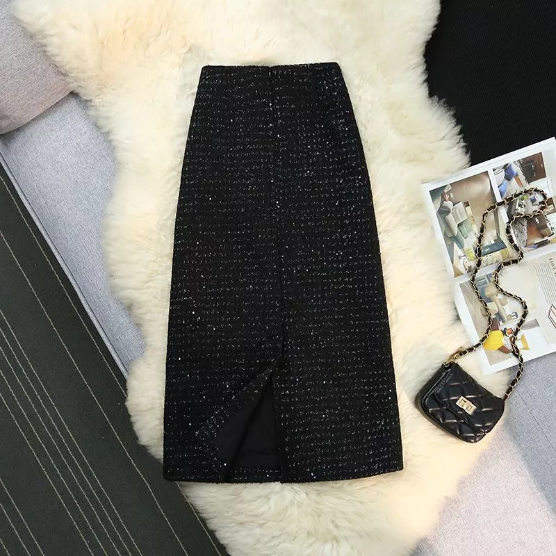 Gonna Lunga Elegante Nera Jacquard Vita Alta Con Paillettes Luminoso CF54266