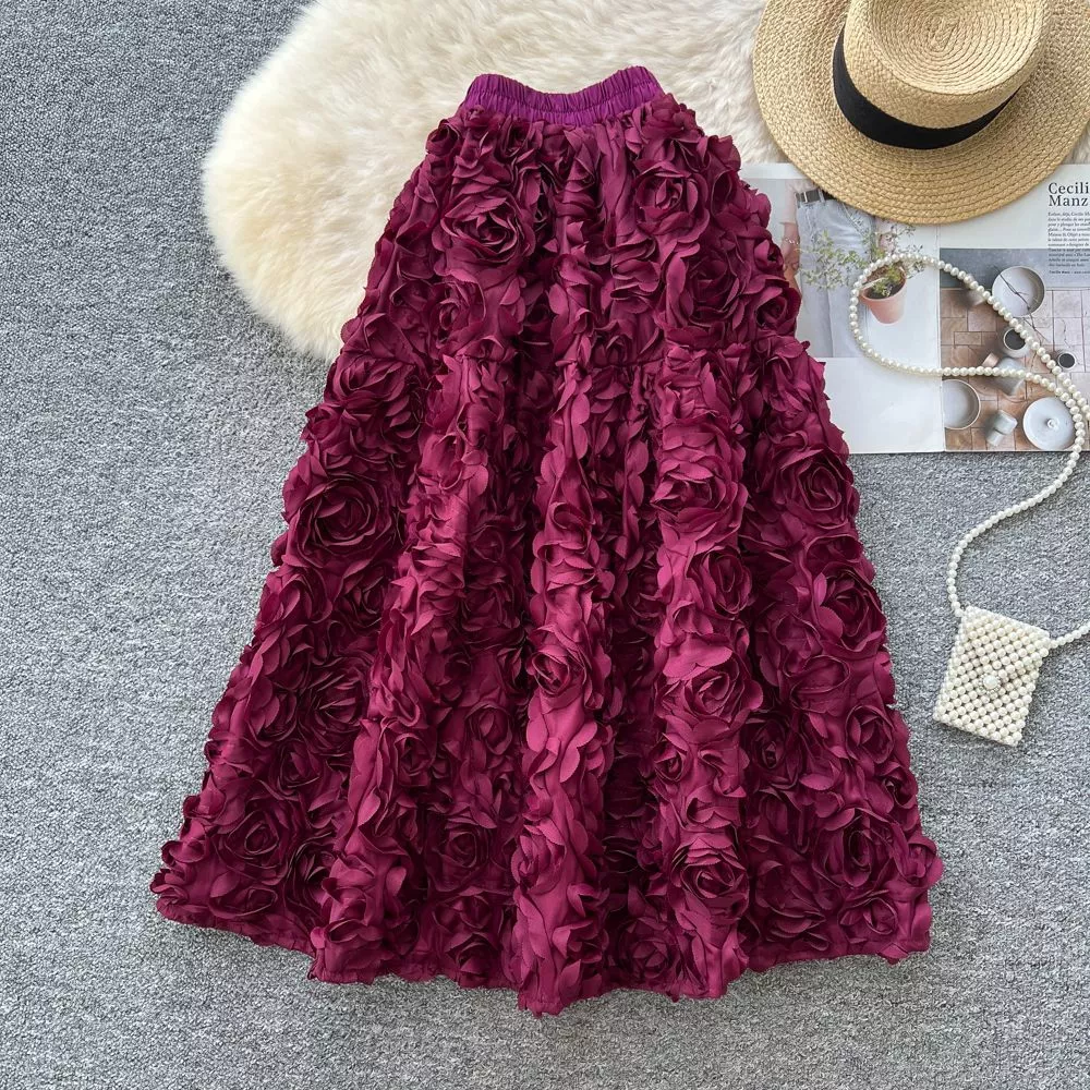Gonna Lunga Rosso Vino Rose 3D Sbuffo Elegante Volume Chic Cerimonia CF59149