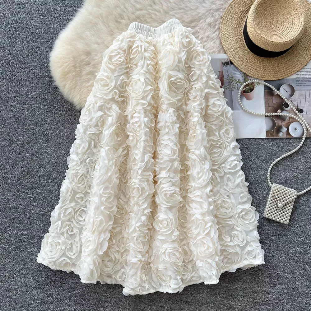 Gonna Lunga Albicocca Rose 3D Elegante Sbuffo Volume Chic Evento Donna CF59149