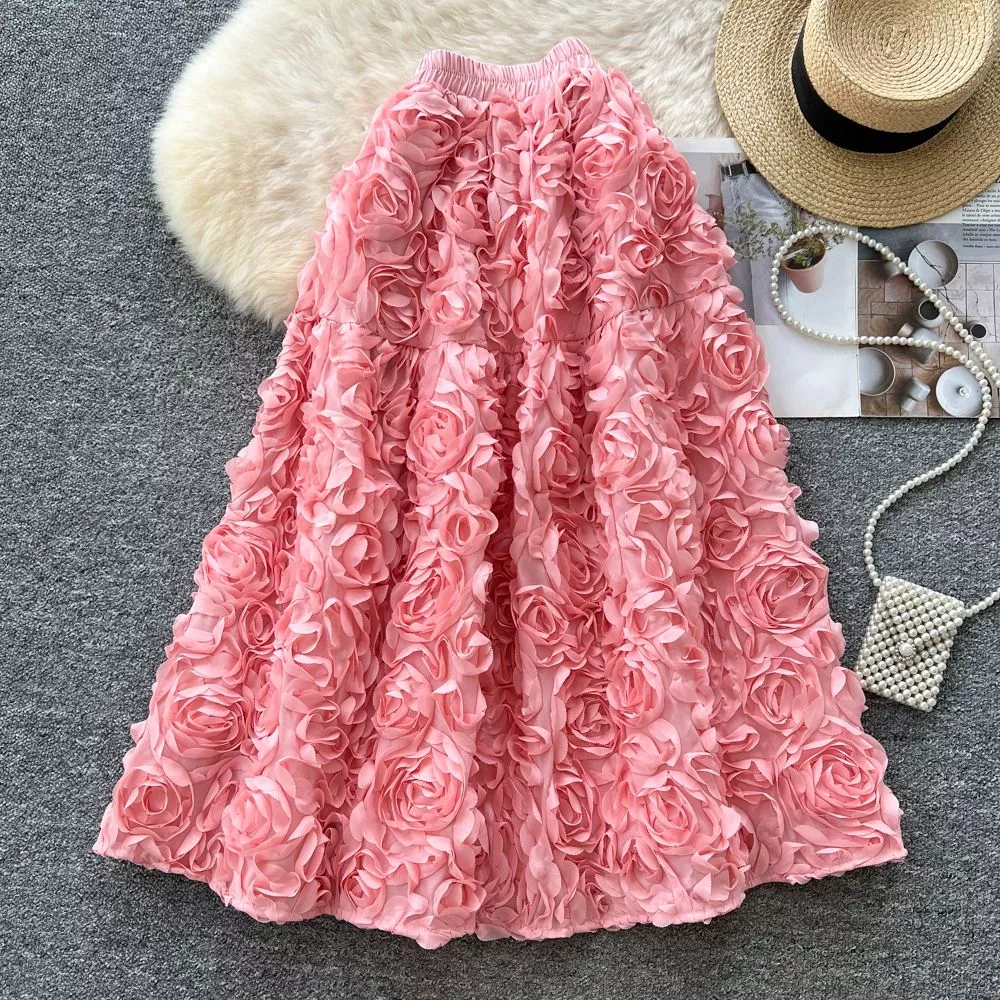 Gonna Lunga Rosa Chiaro Rose 3D Sbuffo Romantica Elegante Evento CF59149