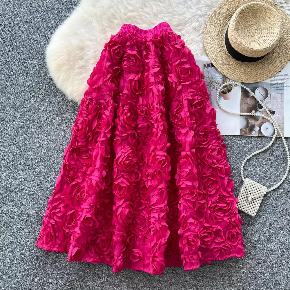 Gonna Lunga Rosa Rosso Sbuffo Rose 3D Volume Elegante Per Cerimonia CF59149
