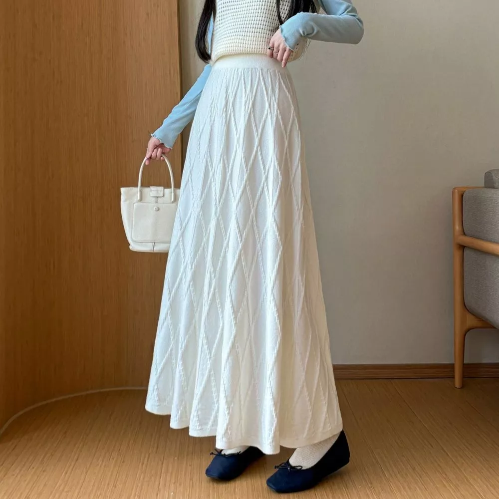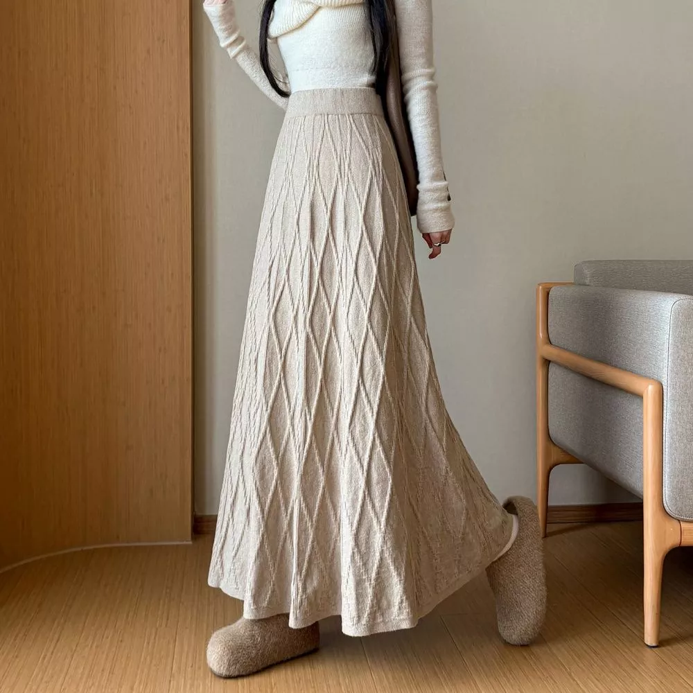 Gonna Lunga Kaki Beige Con Lavorazione Testurizzata Vita Elastica CF65885
