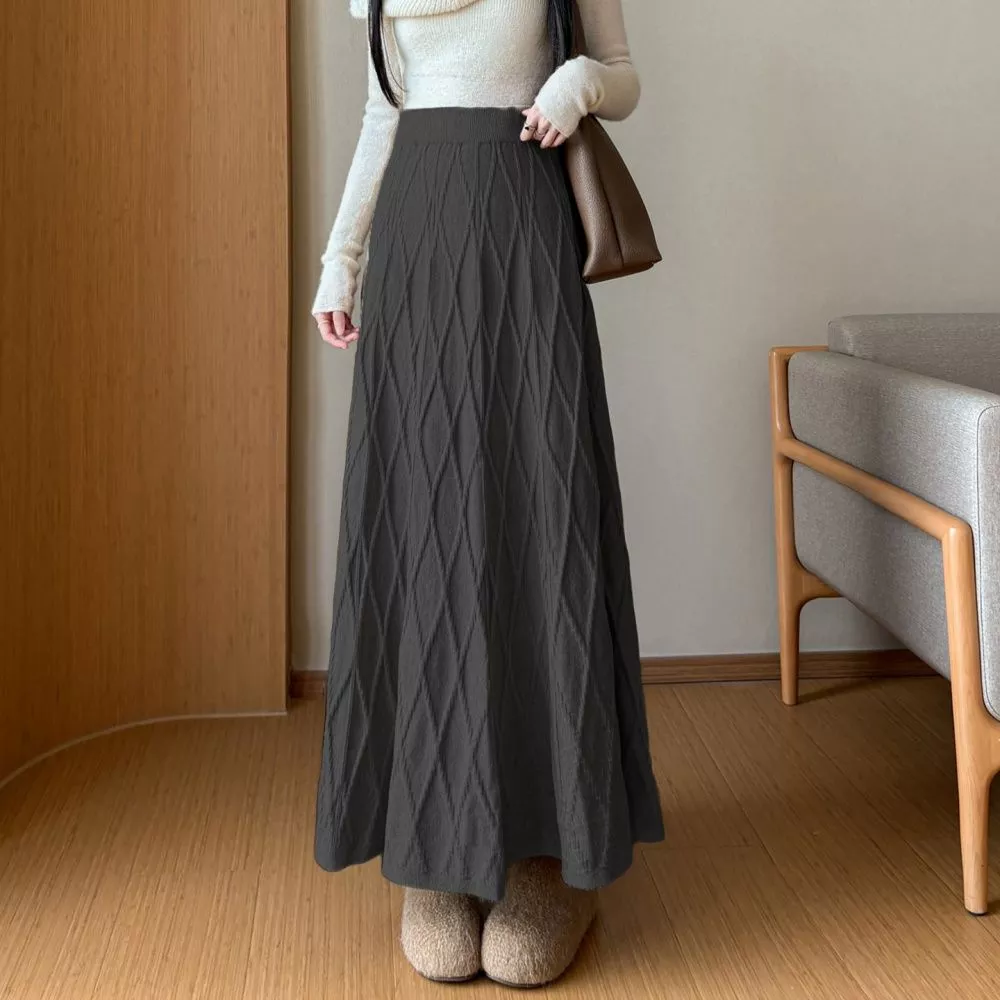 Gonna Lunga Grigio Scuro Con Lavorazione Testurizzata Vita Elastica CF65885