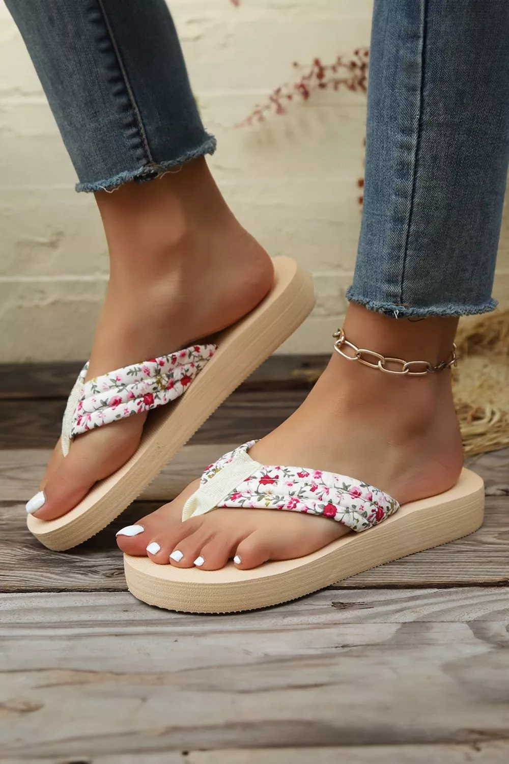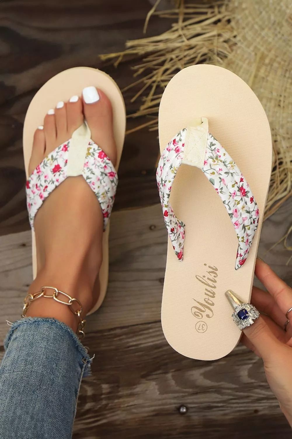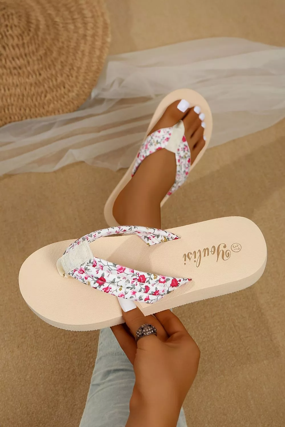 La fascia con motivo floreale dona un tocco femminile senza risultare eccessiva, mentre la suola antiscivolo migliora l’aderenza rendendo queste infradito adatte sia al tempo libero che alle passeggiate. Il colore beige le rende facili da abbinare a qualsiasi outfit estivo.