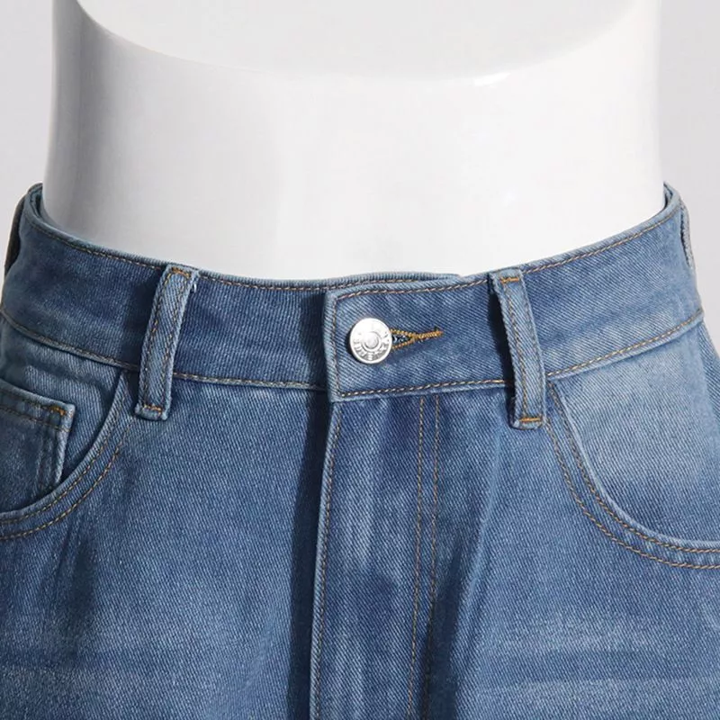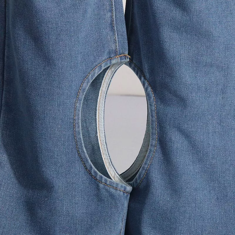 Jeans Denim Blu Dritti Con Tagli Laterali Sexy A Vita Alta Moda Giovane CF56773