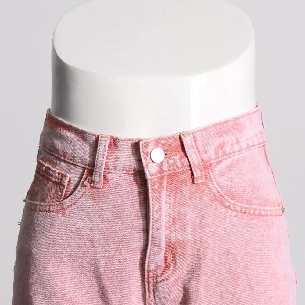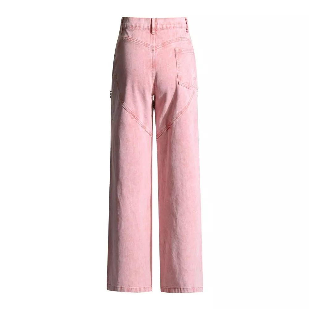 Jeans rosa a vita alta dal taglio moderno e di tendenza, perfetti per chi ama un look deciso ma femminile.