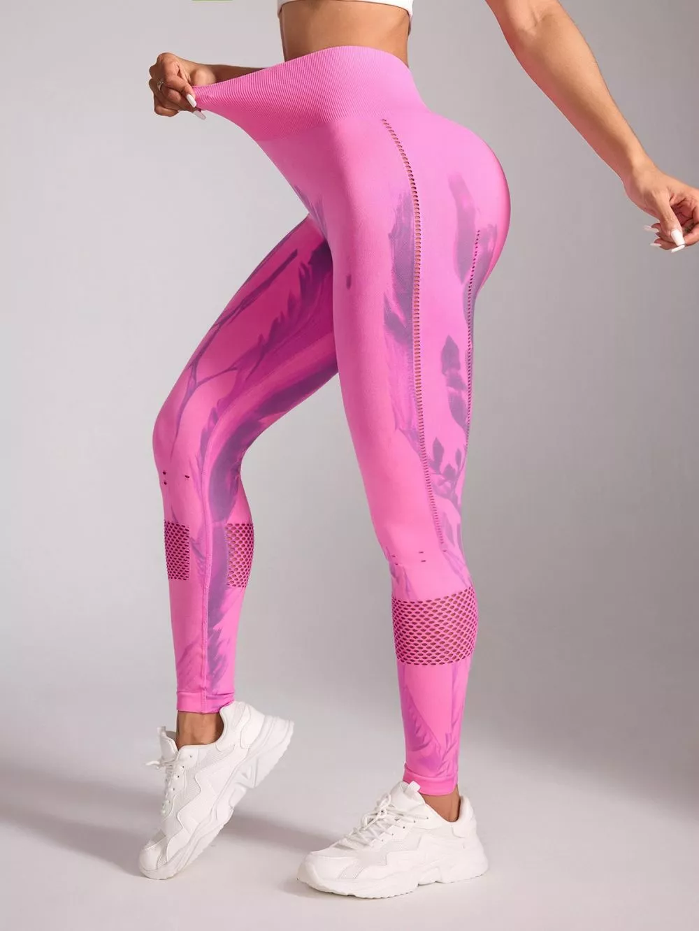 La stampa moderna su base rosa aggiunge un tocco distintivo e dinamico, perfetto per allenamenti in palestra, yoga o attività quotidiane. Le zone traspiranti migliorano la ventilazione, rendendo il capo adatto anche a sessioni intense.