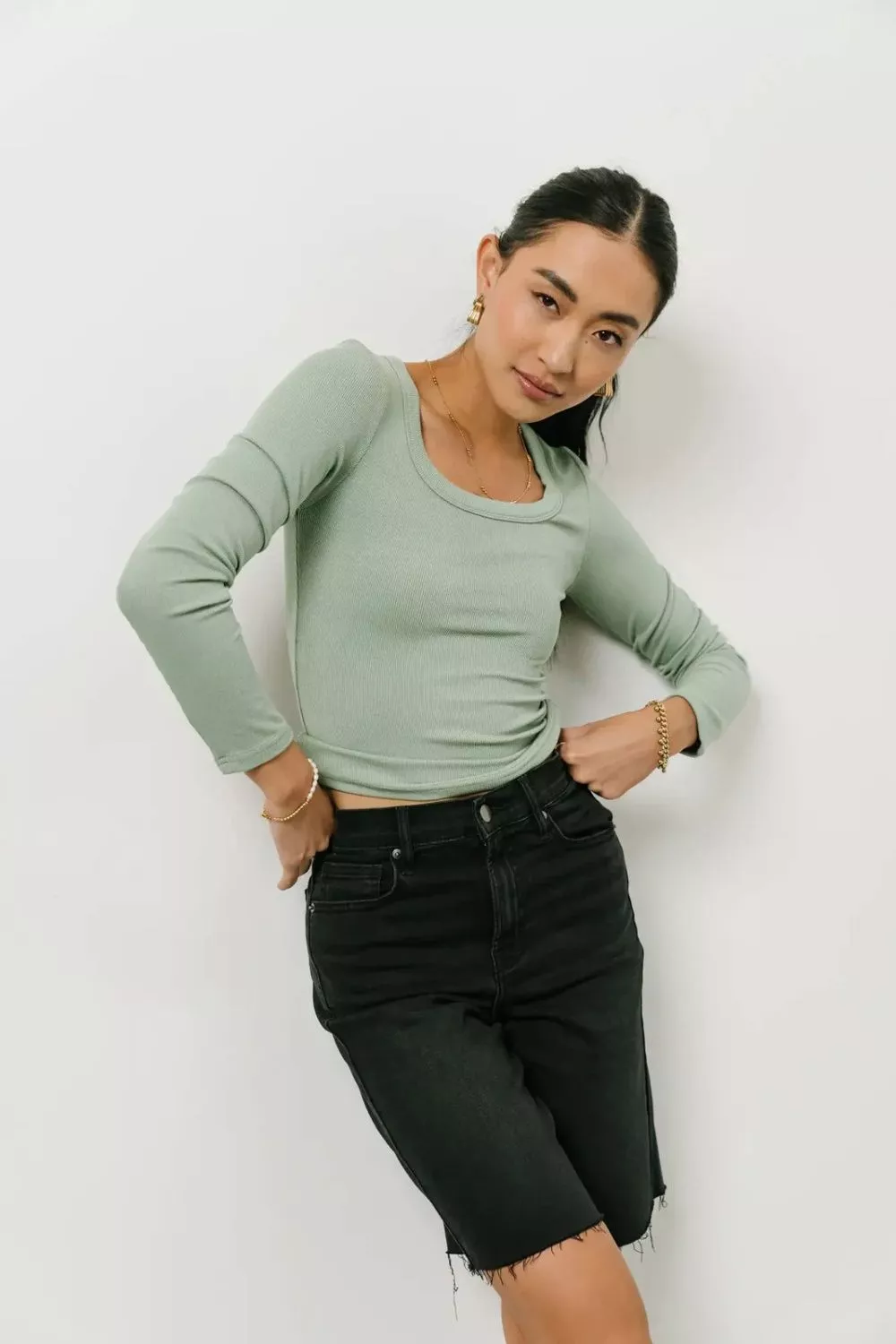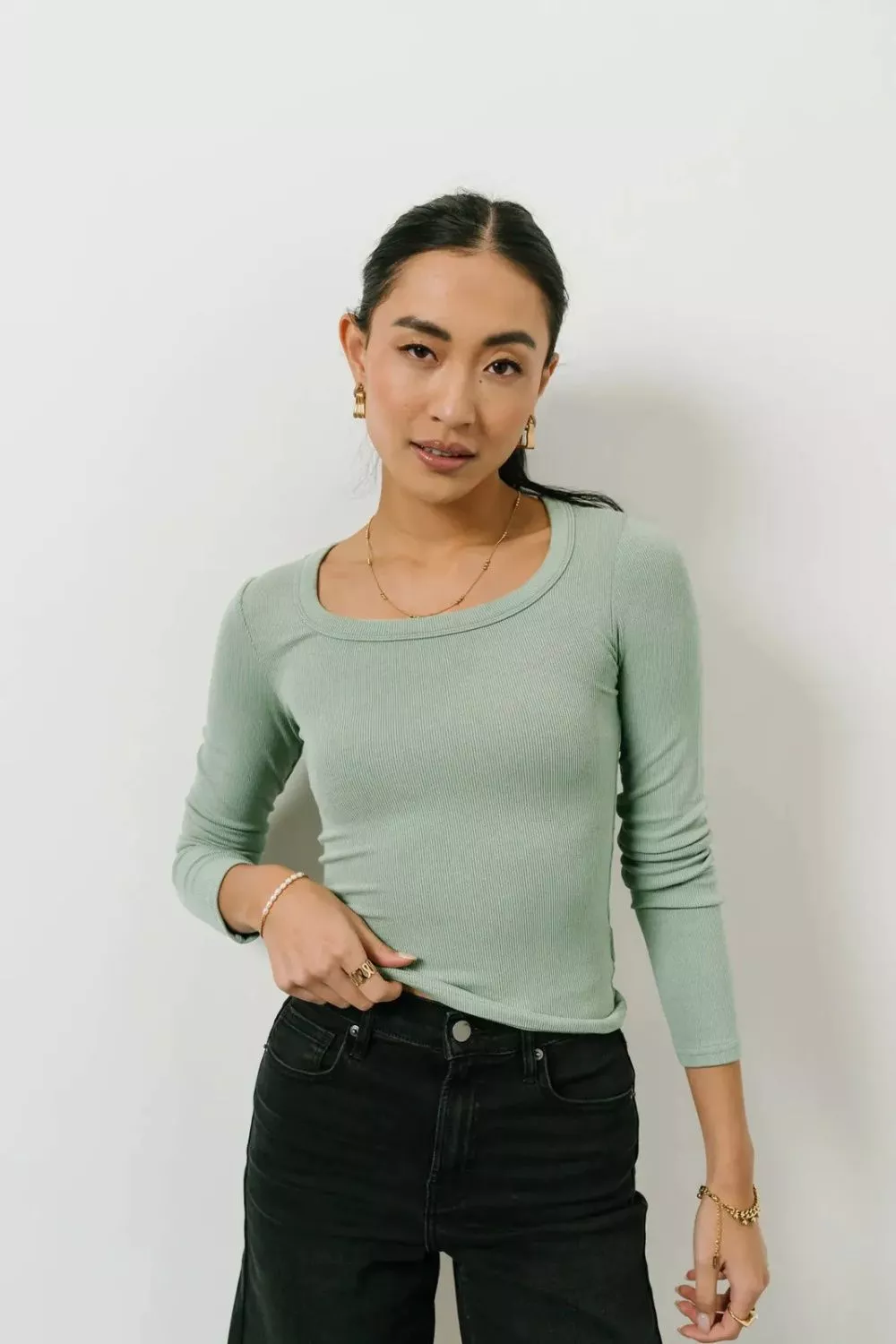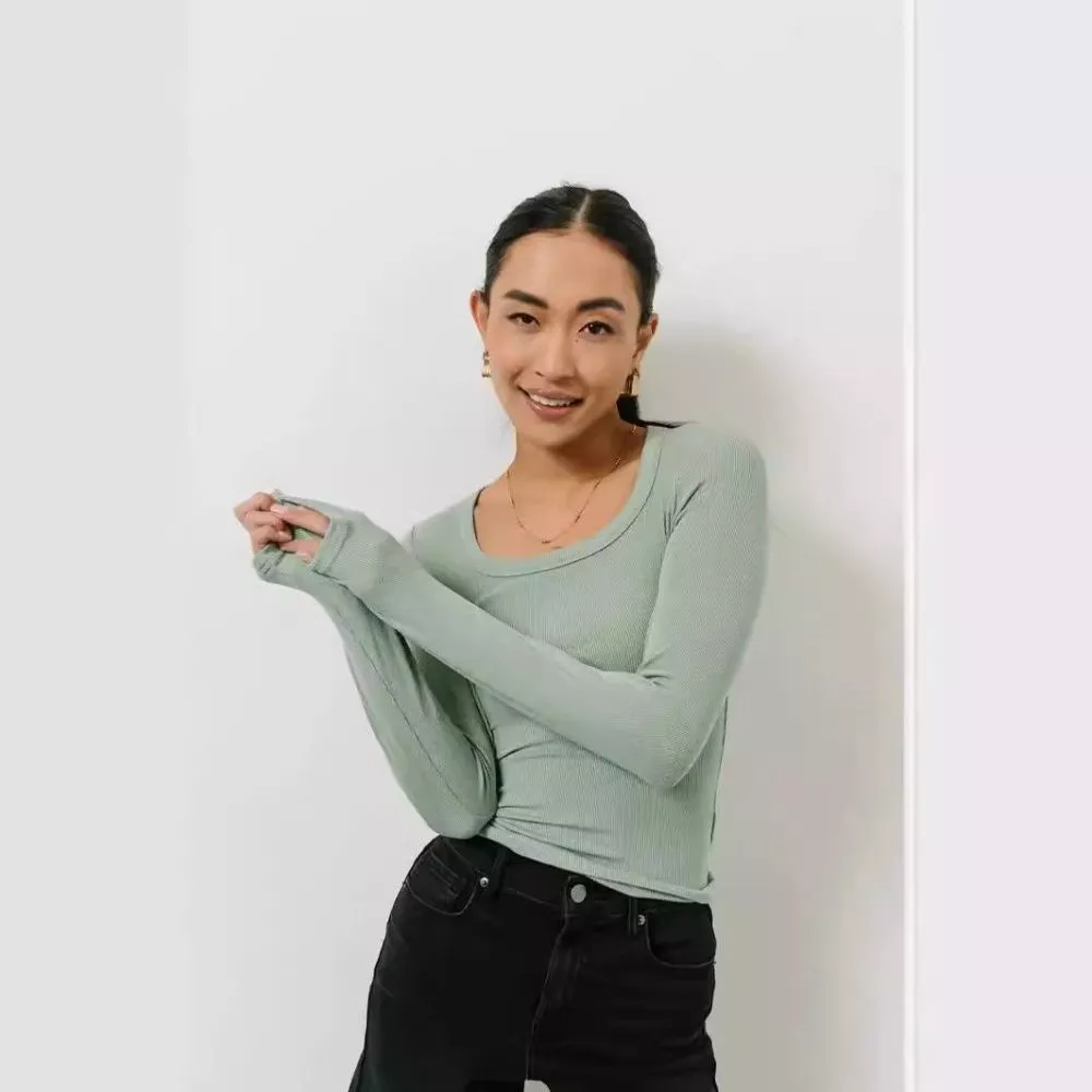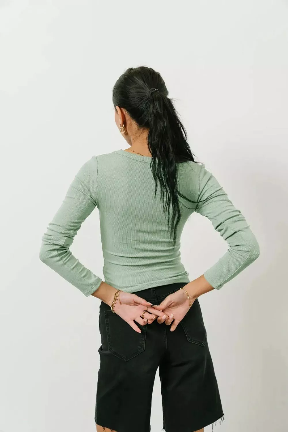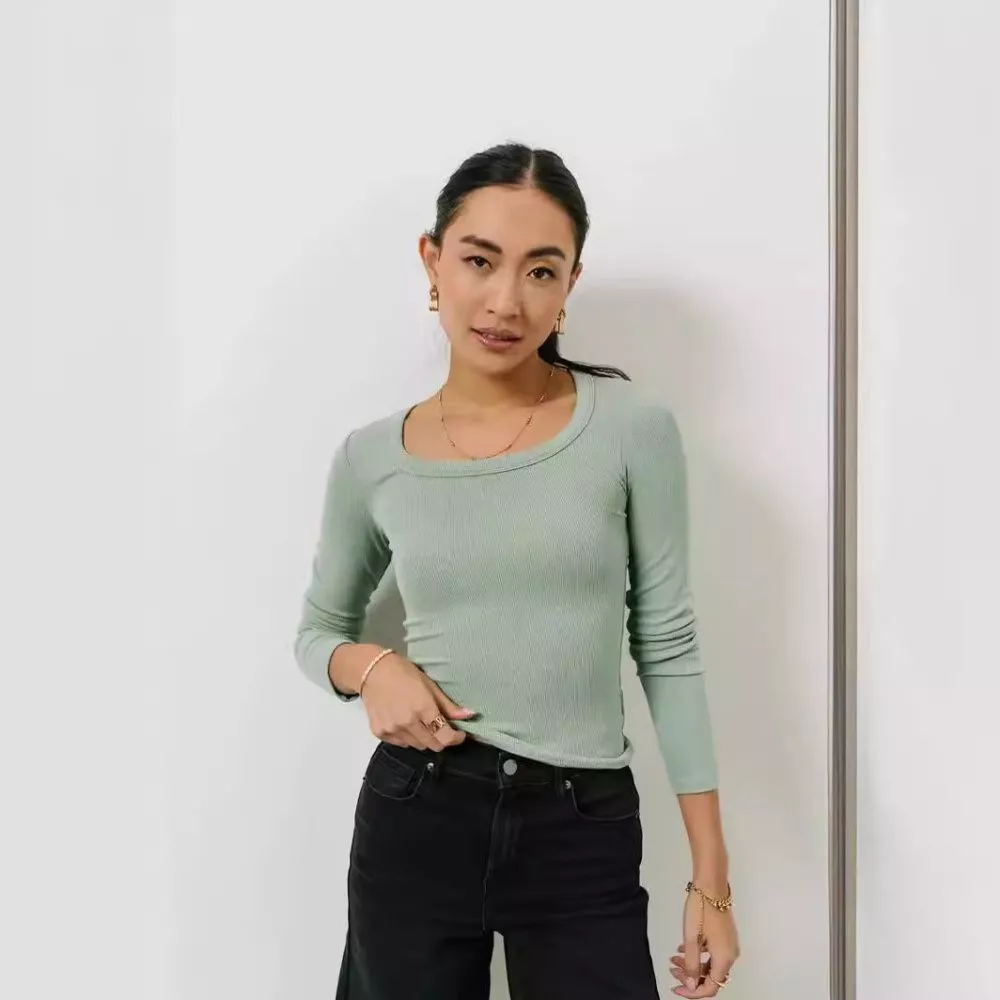 Maglia A Coste Donna Morbida Girocollo Aderente Corta Verde Chiaro 10219