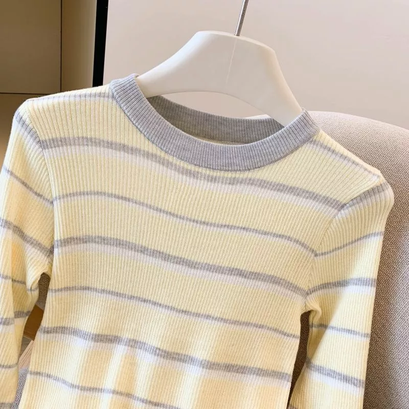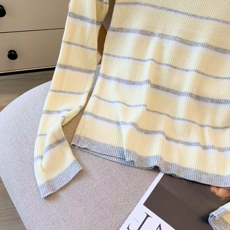 Maglia A Righe Gialla Chiaro Con Colletto A Contrasto Elegante CF55676