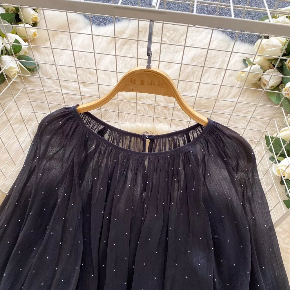 Maglia Donna Elegante In Garza Plissettata Maniche Ampie Stile Francese CF65395