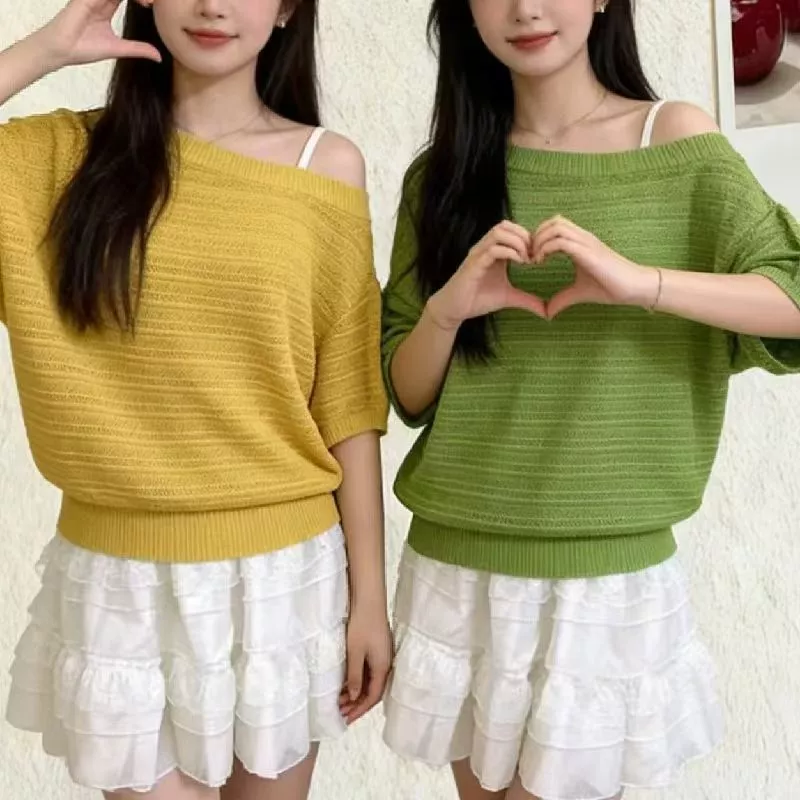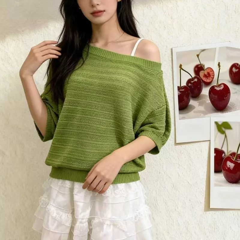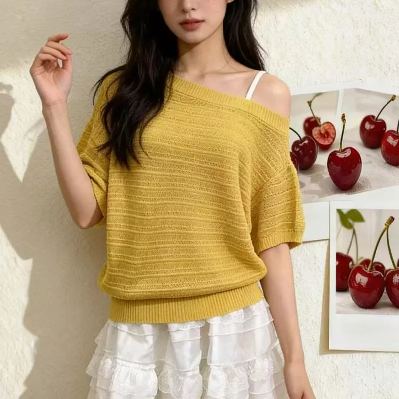 Maglia donna dal taglio morbido e contemporaneo, con scollo ampio effetto spalla scoperta e linea rilassata dal gusto femminile. Un modello versatile e leggero perfetto per look casual ricercati, facile da abbinare con gonne, denim o pantaloni per outfit quotidiani dallo stile attuale.