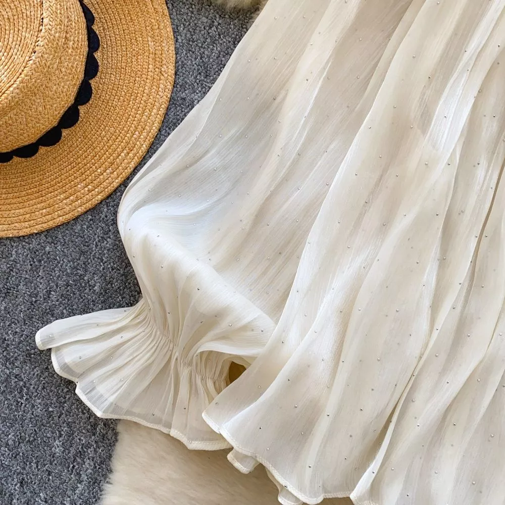 Il tessuto è impreziosito da micro applicazioni luminose discrete, distribuite in modo uniforme per donare luminosità delicata e continua. La struttura leggera e scivolata rende questa maglia ideale sia per outfit curati da giorno che per abbinamenti serali più ricercati. Un capo versatile pensato per chi cerca eleganza quotidiana, comfort e stile femminile ben definito.