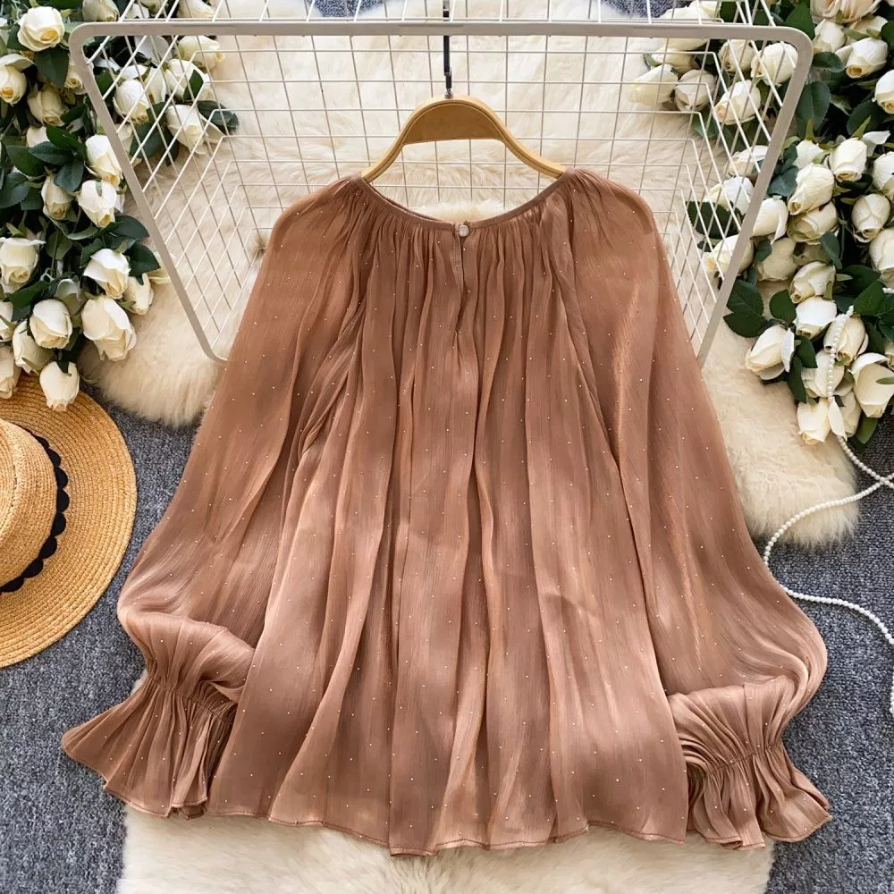 Maglia Donna Stile Francese In Garza Plissettata Beige Morbida Kaki CF65395