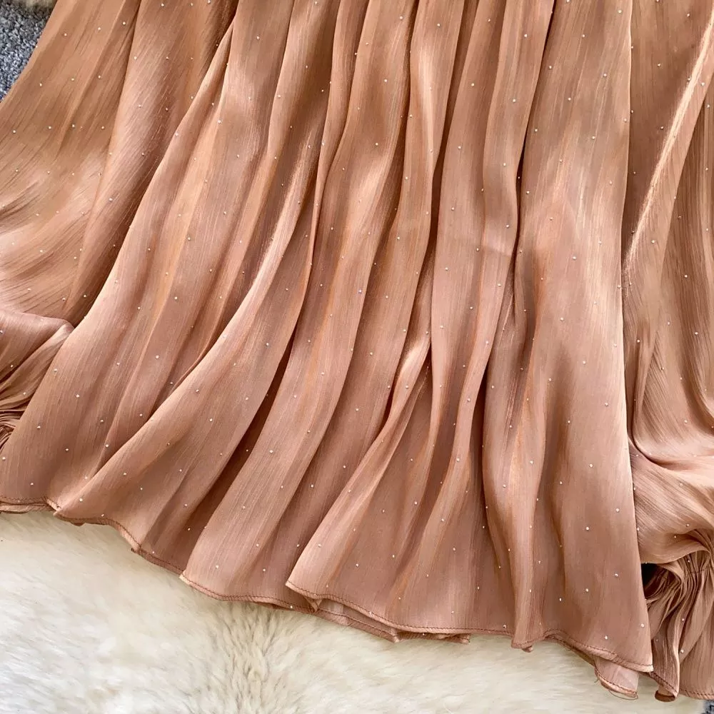 Il tessuto è impreziosito da micro applicazioni luminose discrete, distribuite in modo uniforme per donare luminosità delicata e continua. La struttura leggera e scivolata rende questa maglia ideale sia per outfit curati da giorno che per abbinamenti serali più ricercati. Un capo versatile pensato per chi cerca eleganza quotidiana, comfort e stile femminile ben definito.