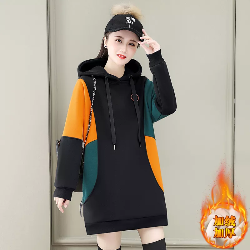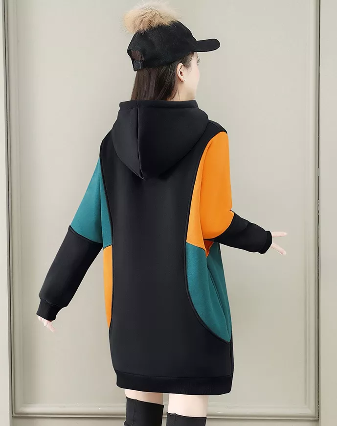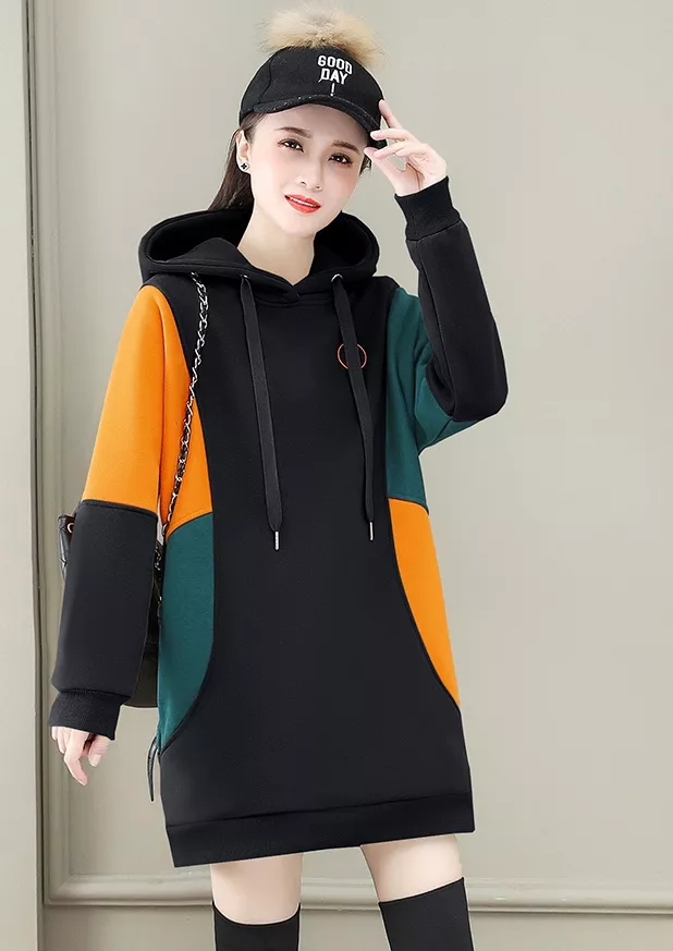 Maglia Felpa Donna Morbida Over Maniche Lunga Nero Cappuccio 44017