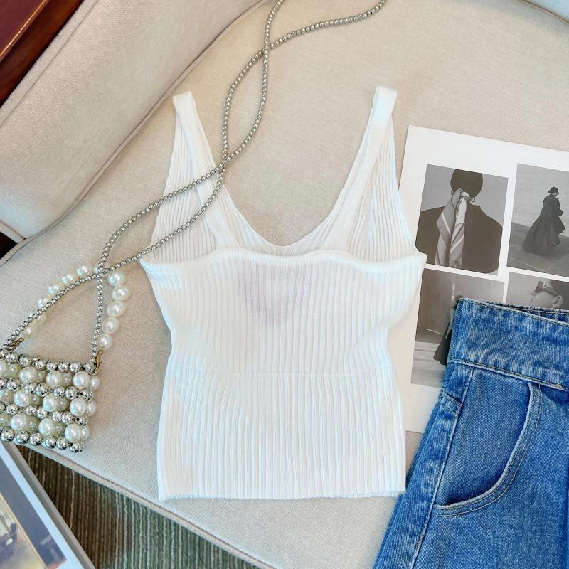Maglia Maglietta Donna T-shirt Canotta Top Fascia Bianco Coste Maglia 73692