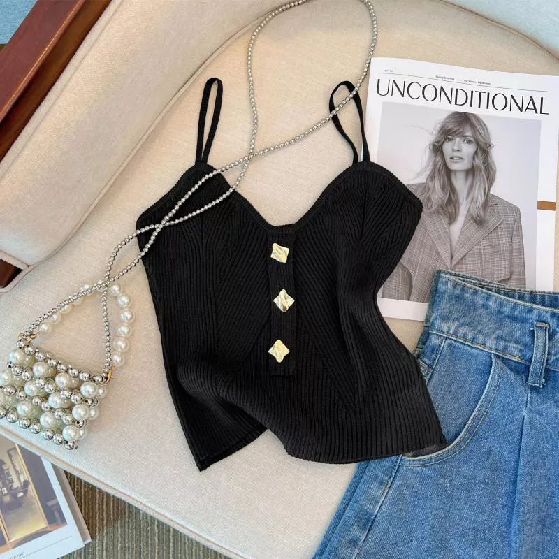 Maglia Maglietta Donna T-shirt Canotta Top Fascia Corto Nero Coste Maglia 71003