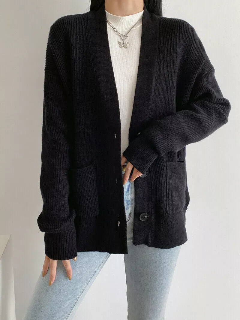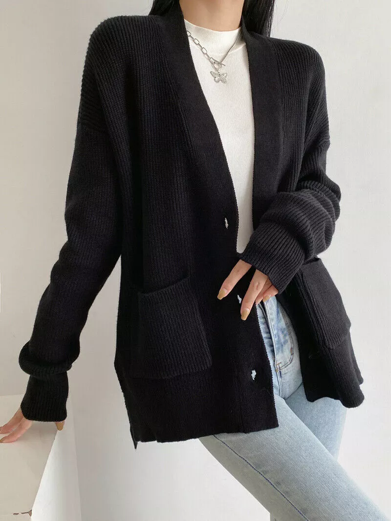 maglia maglione donna maniche lunghe morbida nero cardigan coprispalle 4664