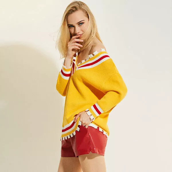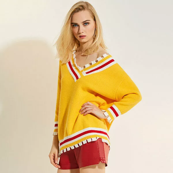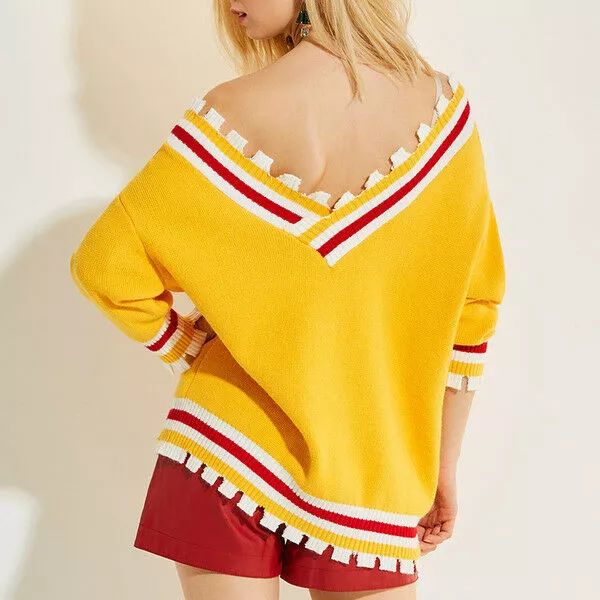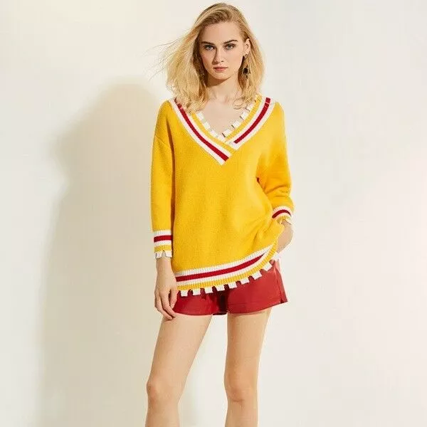maglia maglione maglia donna maniche lunghe giallo rosso acceso morbida 4611