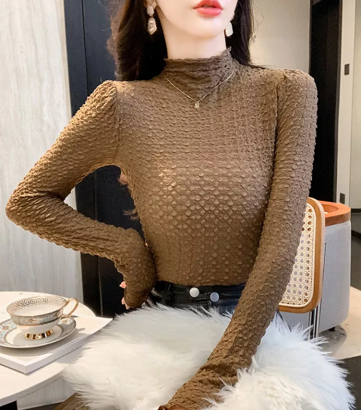 Maglia Sottogiacca Donna Aderente Lupetto Collo Alto Marrone Elasticizzato 40305