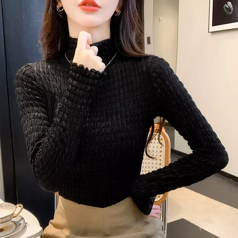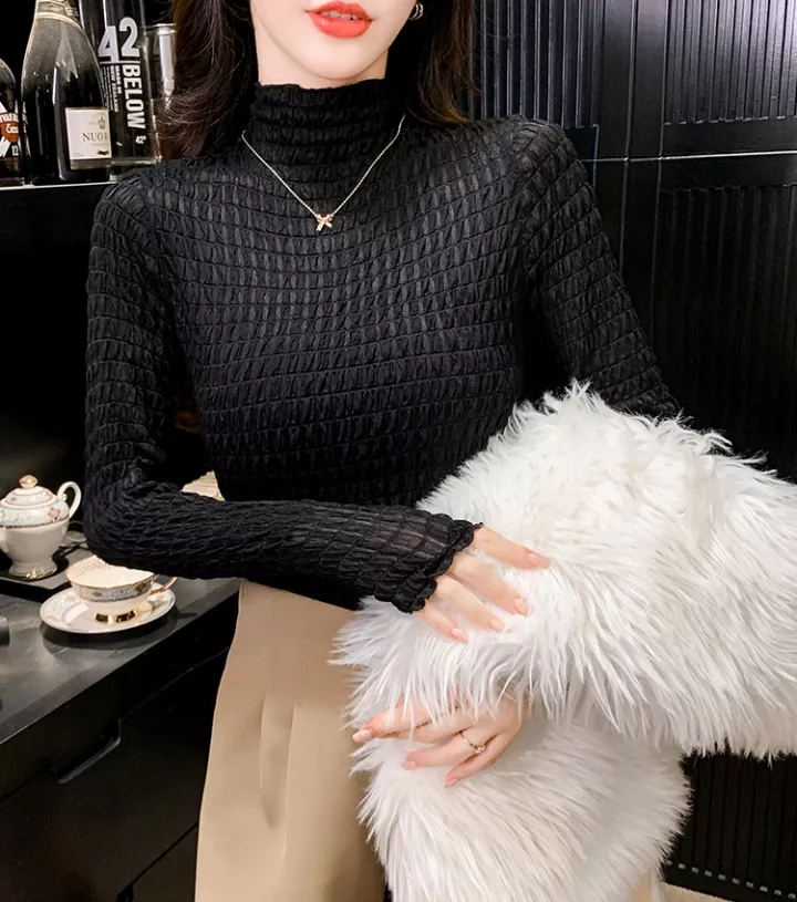 Maglia Sottogiacca Donna Aderente Lupetto Collo Alto Nero Elasticizzata 40301