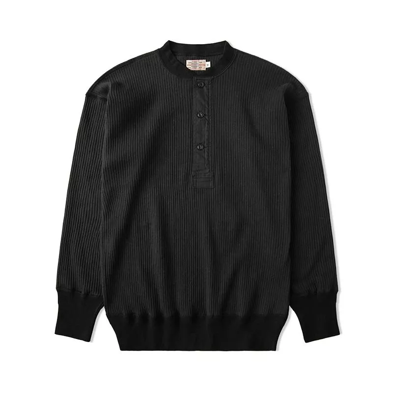 La chiusura con bottoni sul petto e il collo serafino la rendono una scelta molto valida per chi vuole un capo maschile semplice, moderno e più distintivo della classica t-shirt a manica lunga.