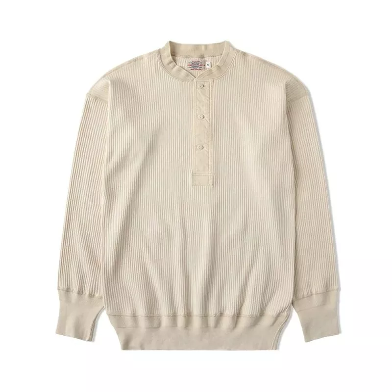 La chiusura con bottoni sul petto e il collo serafino la rendono una scelta molto valida per chi vuole un capo maschile semplice, moderno e più distintivo della classica t-shirt a manica lunga.