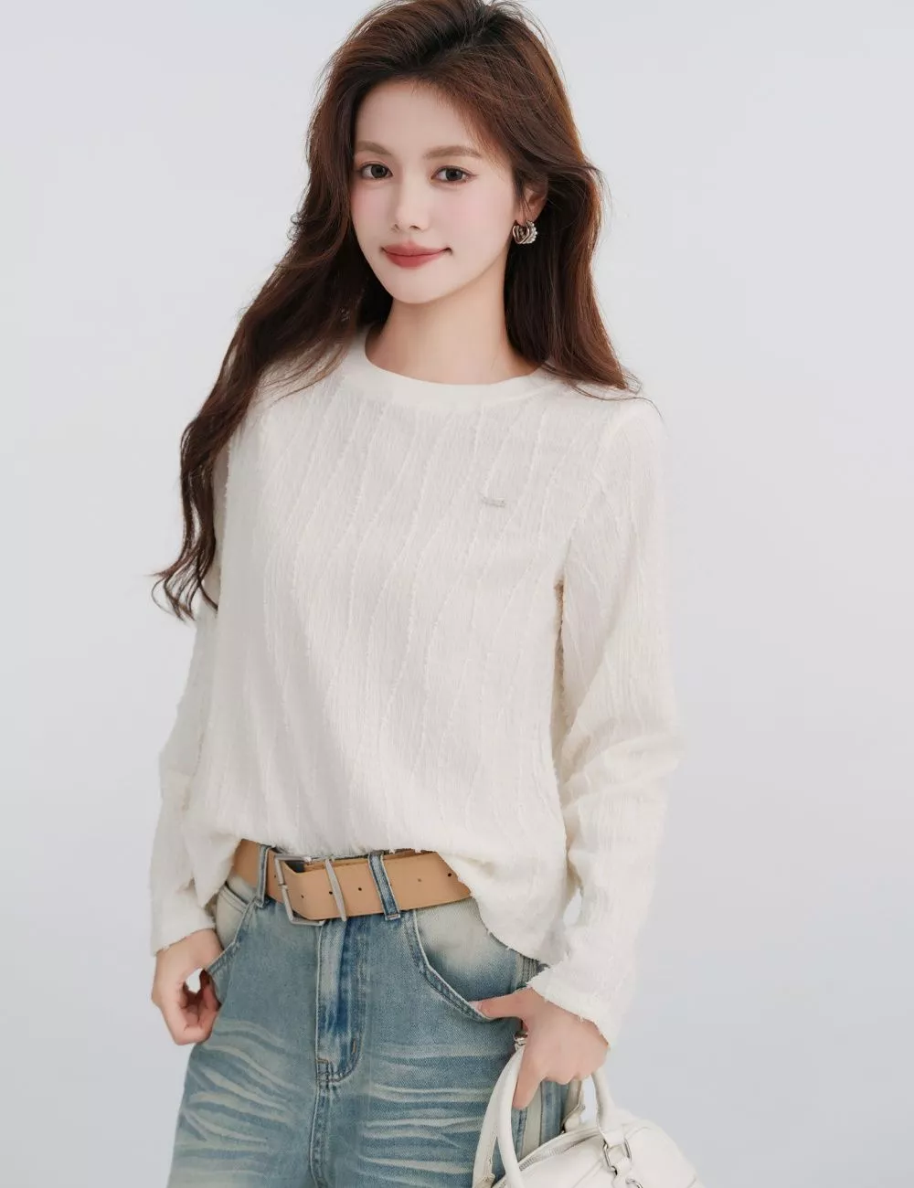 Maglietta Donna Casual A Collo Tondo Albicocca Maniche Lunghe Morbida CF65601