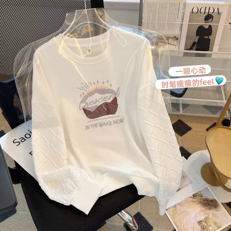 Felpa Bianca Donna Con Stampa Ricamata Maniche Lunghe Casual Chic CF53549
