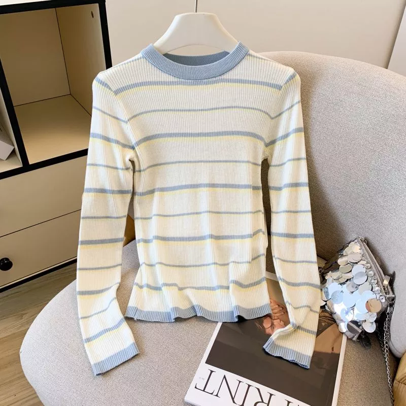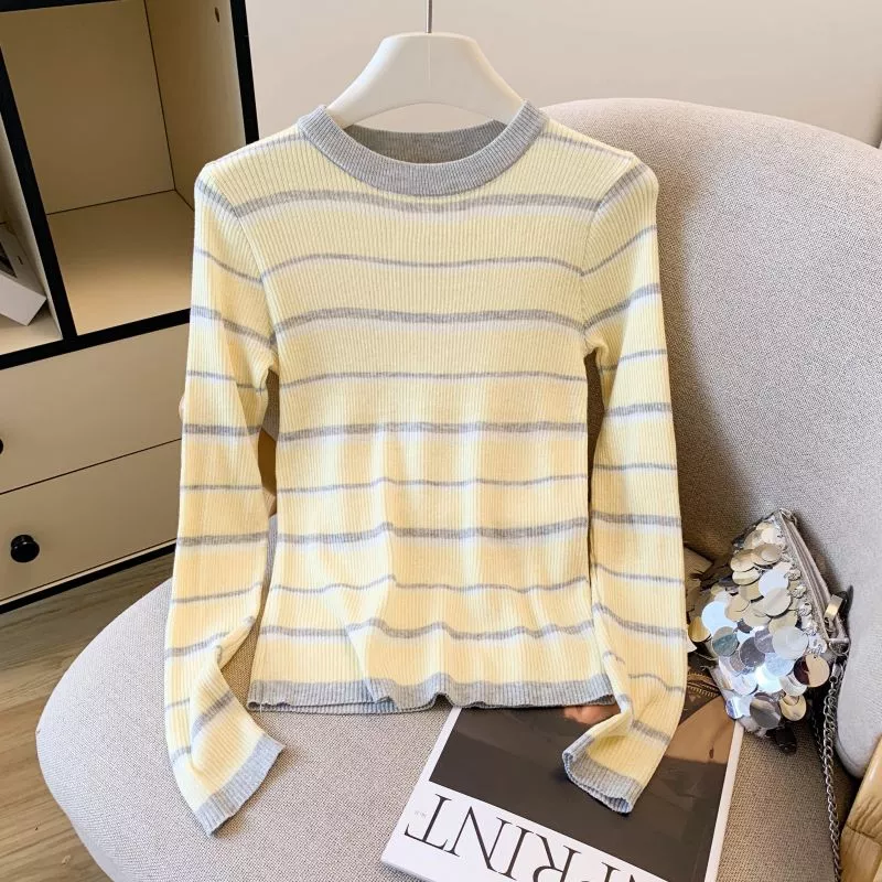 Maglia A Righe Gialla Chiaro Con Colletto A Contrasto Elegante CF55676