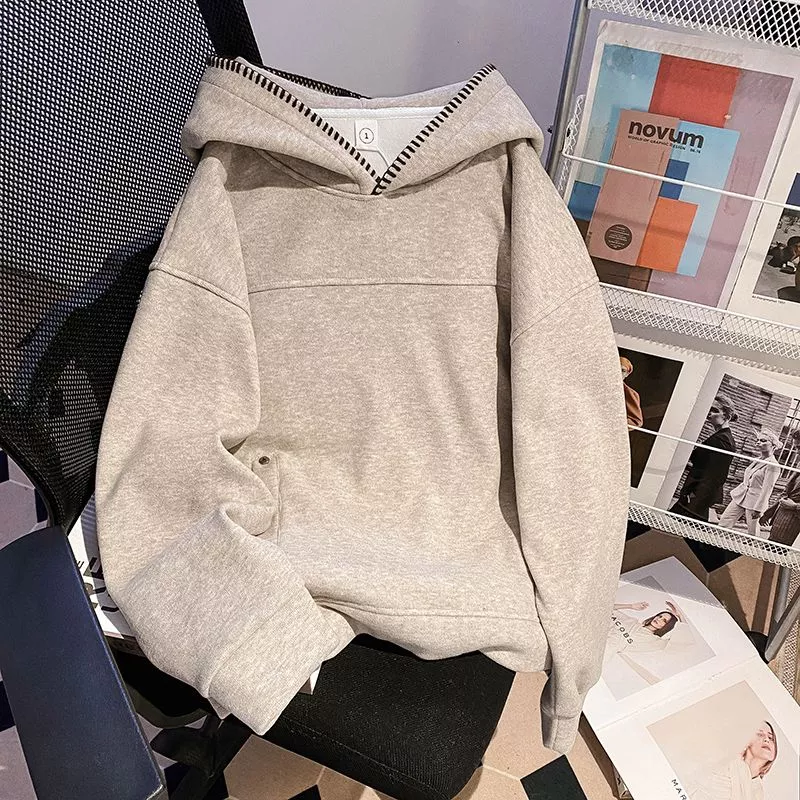 Felpa Donna Con Cappuccio Beige Oversize Ricamo Frontale Casual CF66419