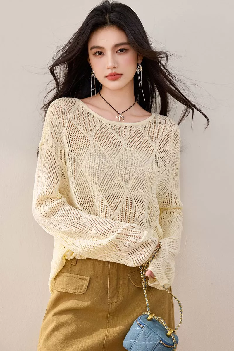 Maglione Donna Beige Traforato Oversize Maglia Casual Chic CF67126