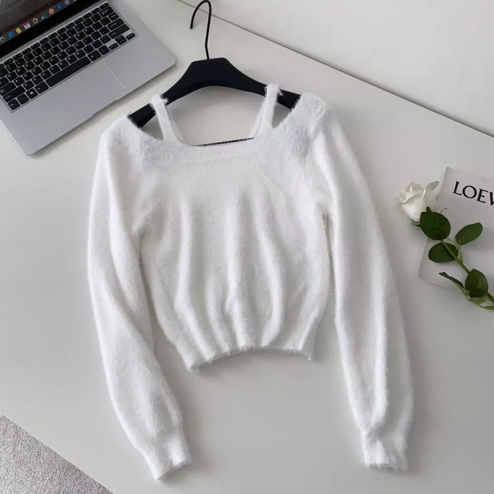 Maglione donna corto dal design elegante e femminile, caratterizzato da una lavorazione morbida e da uno scollo a V che valorizza il décolleté. Le spalline sottili aggiungono un dettaglio ricercato, mentre le maniche lunghe bilanciano il taglio corto creando una silhouette armoniosa. Un capo versatile, ideale per outfit curati da sera o per look raffinati da giorno.