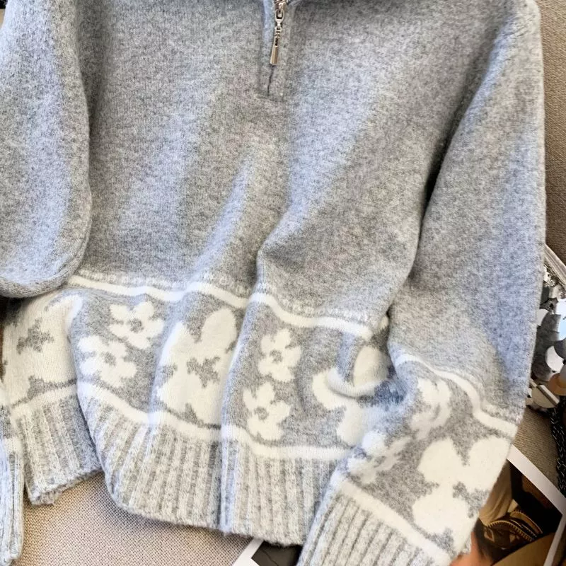 Maglione morbido e caldo, ideale per look casual femminili ben curati. Il design con fiori a contrasto dona un tocco moderno e valorizza la linea senza appesantire, mentre il collo con zip aggiunge versatilità e un'aria raffinata. Il taglio è comodo, pensato per un utilizzo quotidiano, con resa piacevole anche negli outfit layered. Perfetto per chi desidera un capo soffice, accogliente e facile da abbinare nelle giornate fresche.