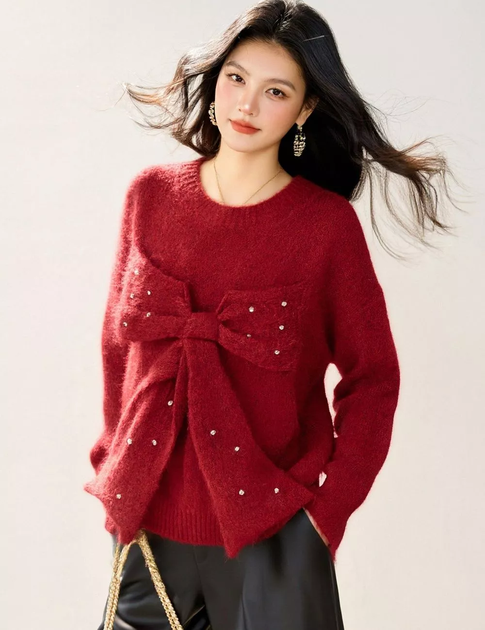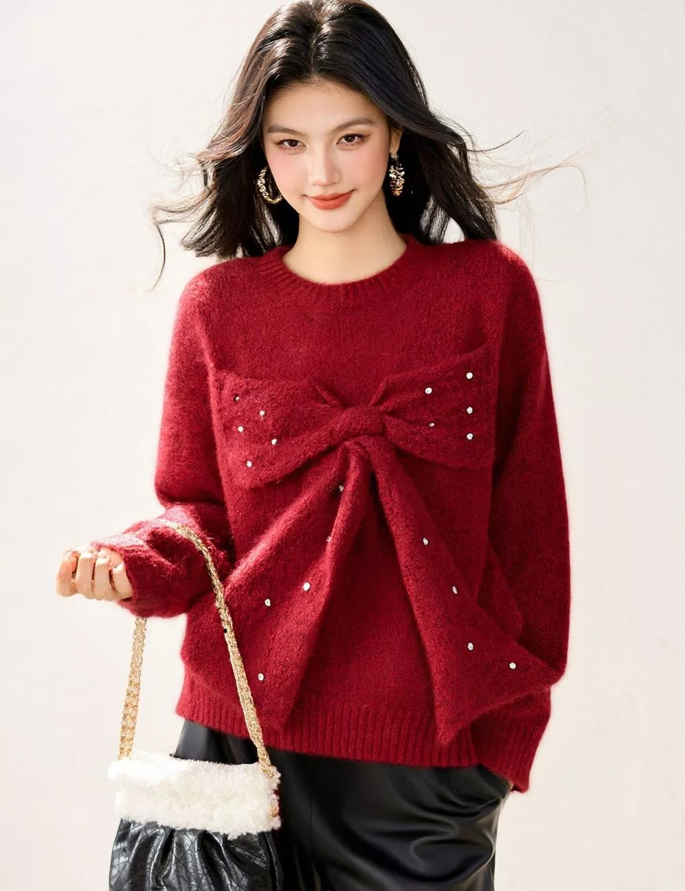 Maglione Donna Rosso Con Fiocco Centrale E Dettagli Luminosi Elegante CF65899