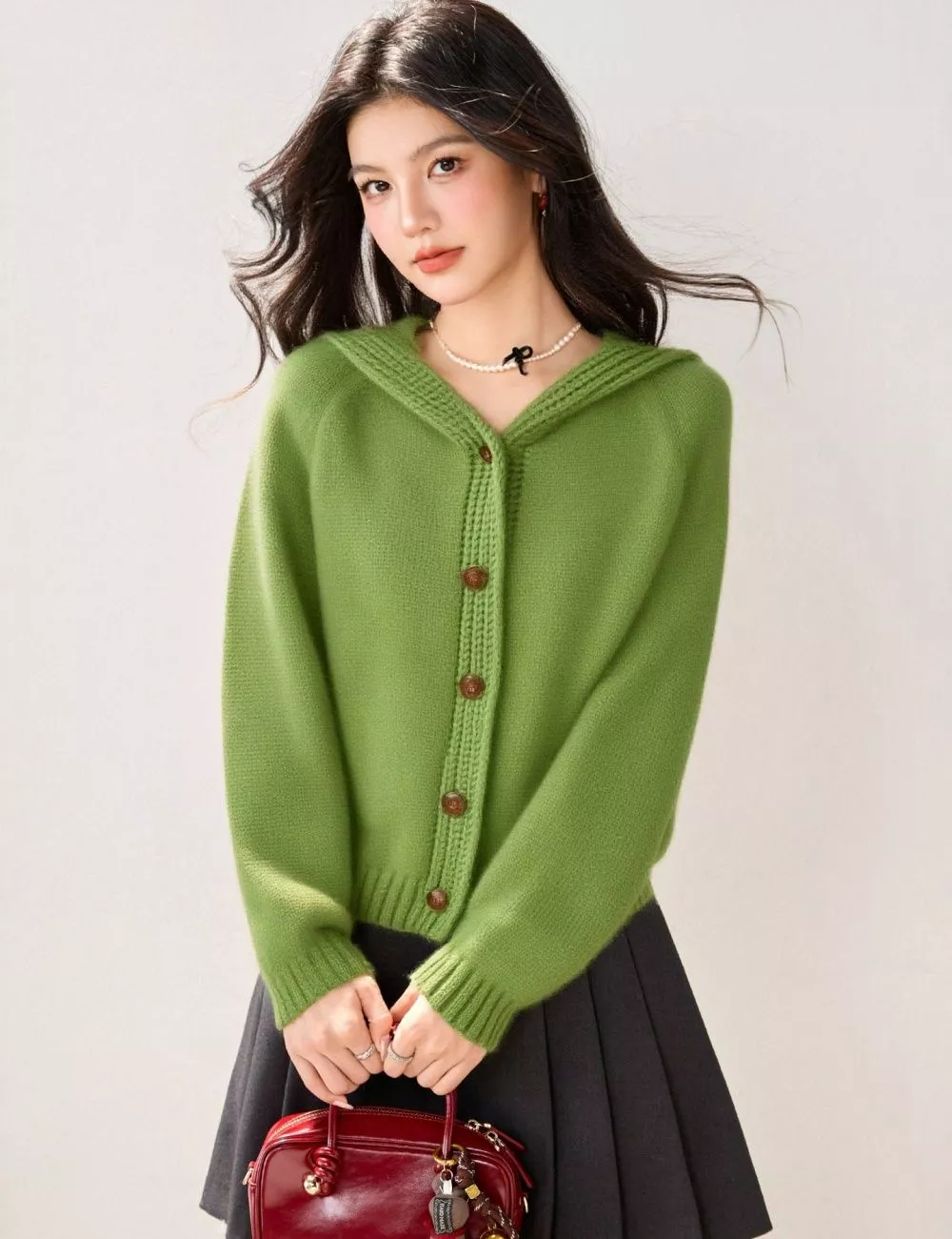 Maglione da donna dalla vestibilità morbida e confortevole, ideale per la stagione fredda e per look quotidiani curati. Il design con cappuccio integrato e chiusura frontale con bottoni dona al capo uno stile pratico e femminile, facile da abbinare sia a gonne che a pantaloni.