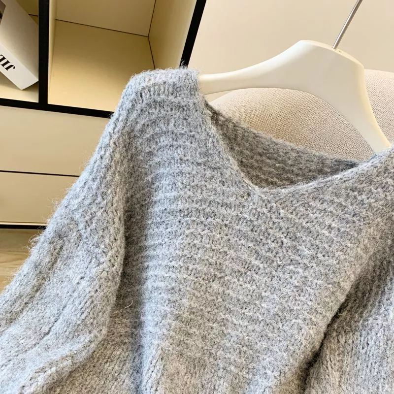Maglione donna a maglia morbida con texture soffice e scollo a V. Il modello ampio e leggero valorizza la figura con naturalezza, regalando una vestibilità comoda e avvolgente. Perfetto per outfit casual o look rilassati, dona un tocco chic anche con jeans o gonne midi. La maglia dalla trama vaporosa si distingue per la morbidezza e i toni delicati — grigio, lilla o beige — ideali per la stagione fredda. Un capo versatile, elegante e confortevole, must-have del guardaroba contemporaneo.