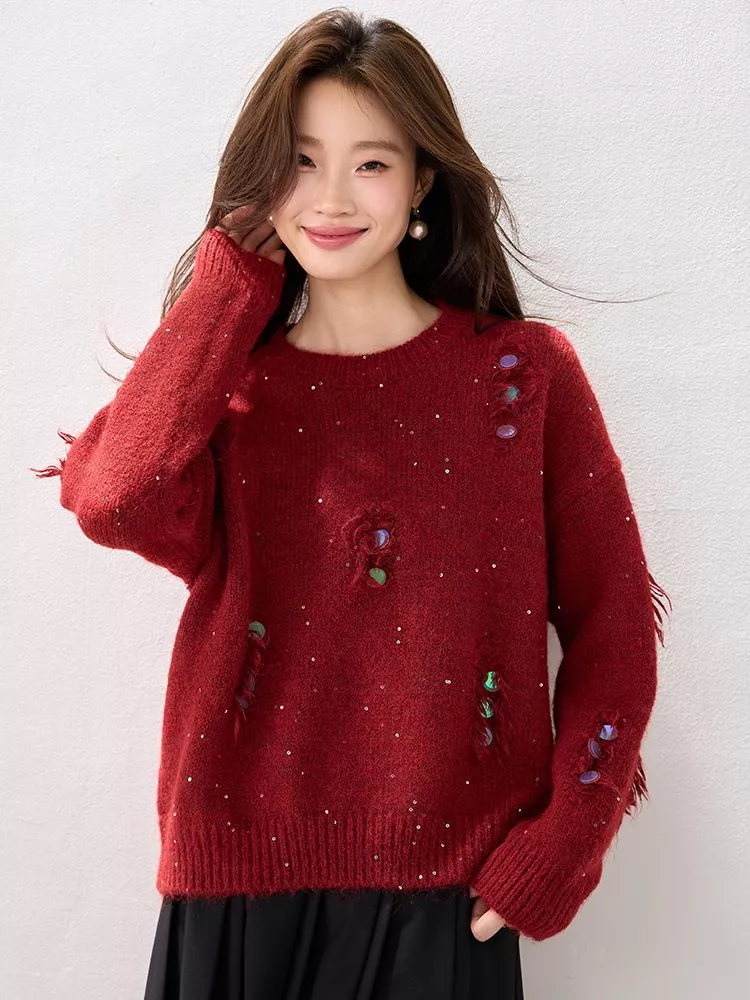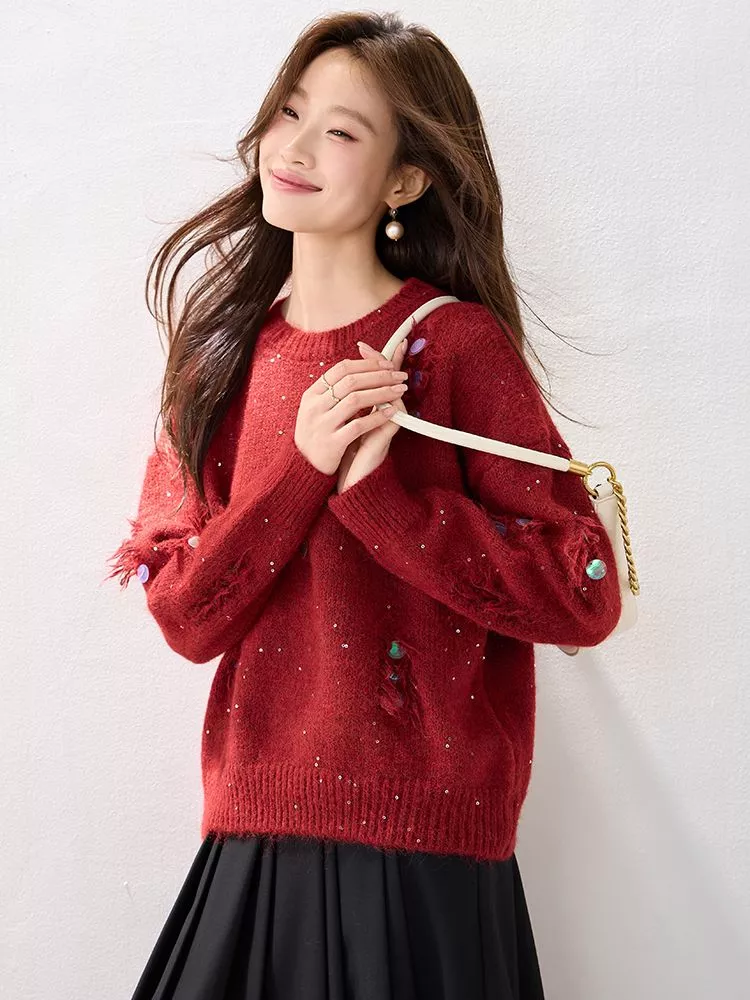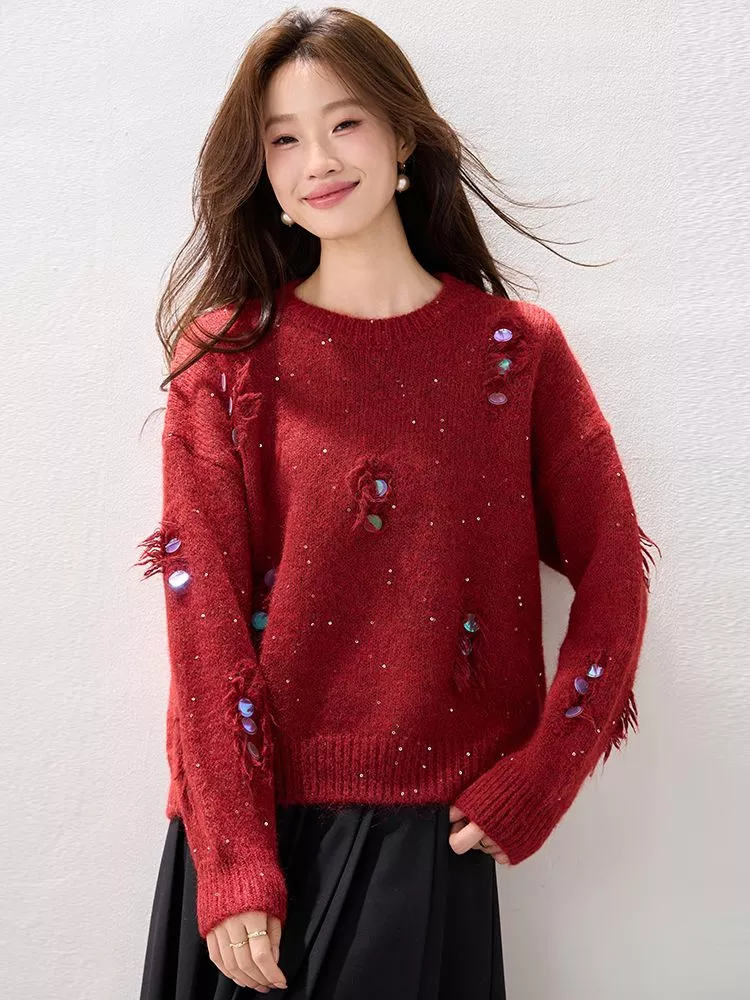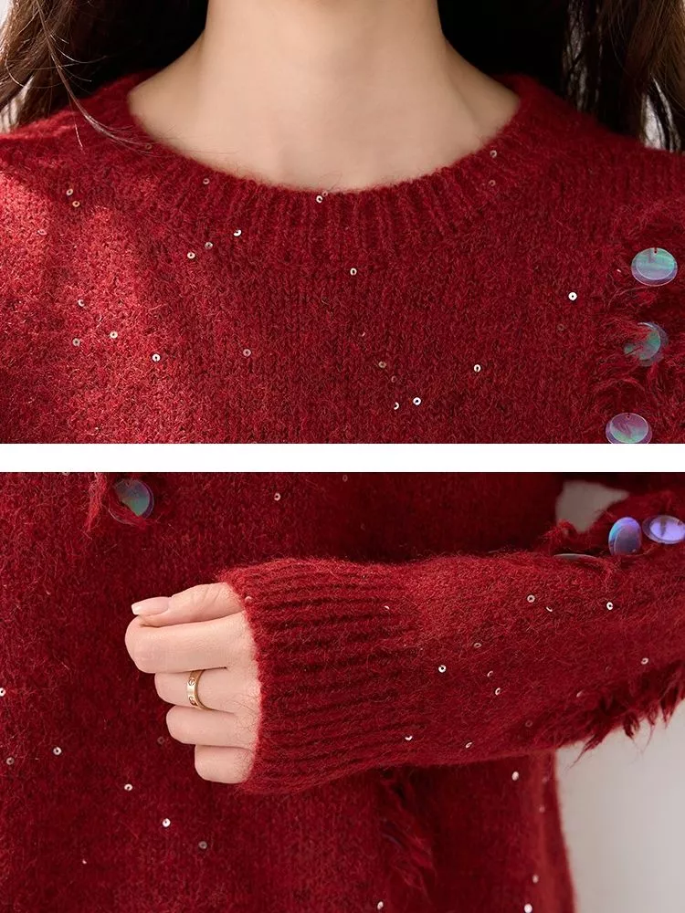 Maglione Morbido Rosso Con Applicazioni Elegante Effetto Luminoso Donna CF60078