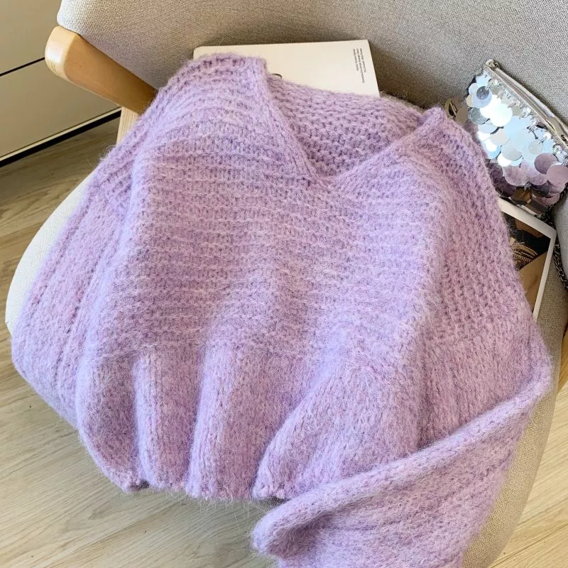 Maglione donna a maglia morbida con texture soffice e scollo a V. Il modello ampio e leggero valorizza la figura con naturalezza, regalando una vestibilità comoda e avvolgente. Perfetto per outfit casual o look rilassati, dona un tocco chic anche con jeans o gonne midi. La maglia dalla trama vaporosa si distingue per la morbidezza e i toni delicati — grigio, lilla o beige — ideali per la stagione fredda. Un capo versatile, elegante e confortevole, must-have del guardaroba contemporaneo.