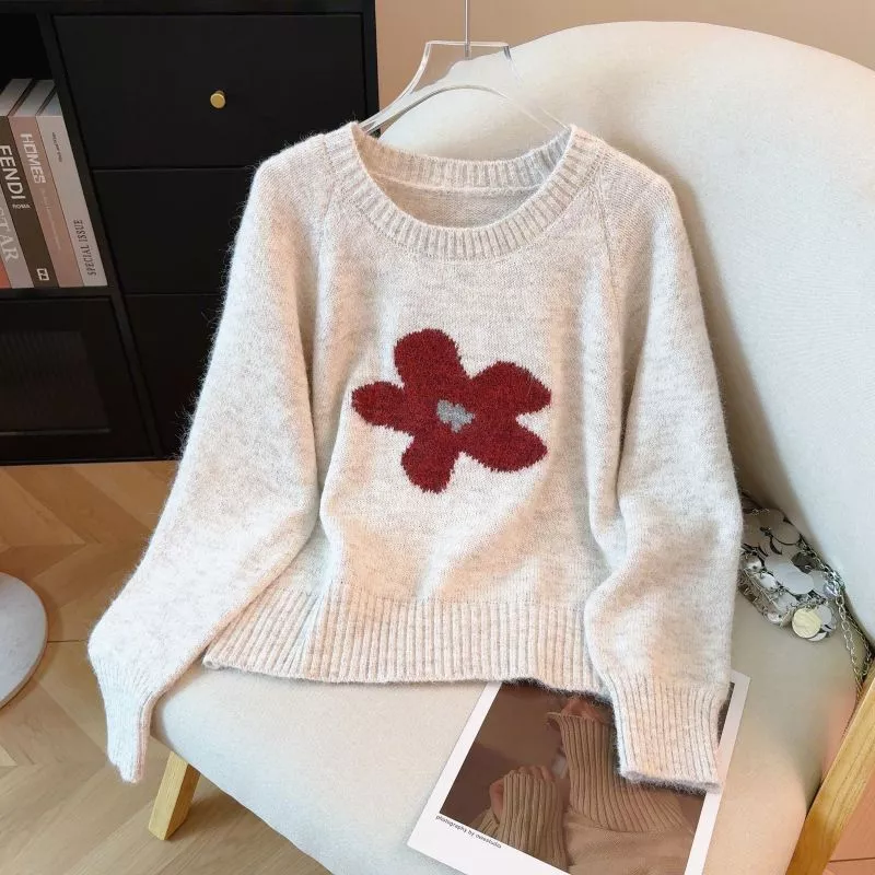 Maglione Caldo Albicocca Fiore Applicato Stile Casual Morbido Inverno CF59733