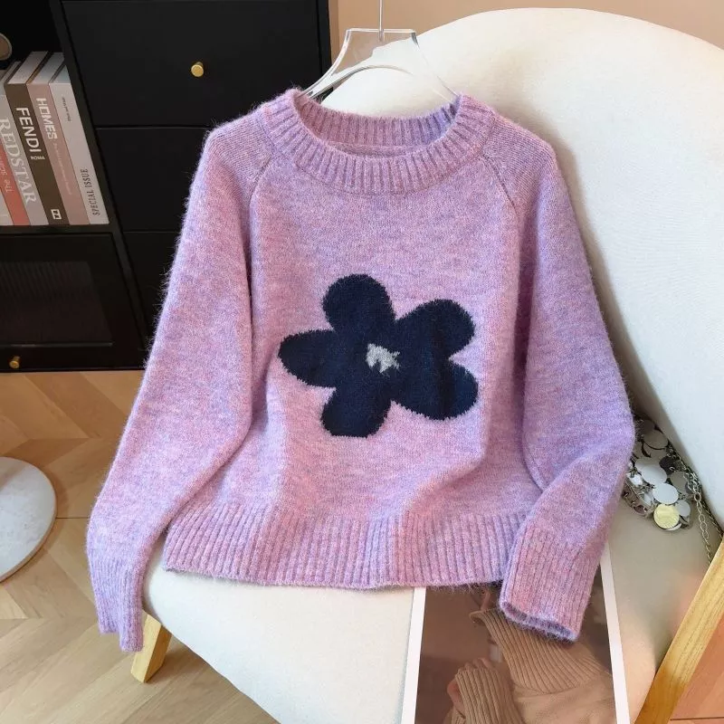 Maglione Caldo Porpora Con Fiore Applicato Stile Casual Morbido Inverno CF59733