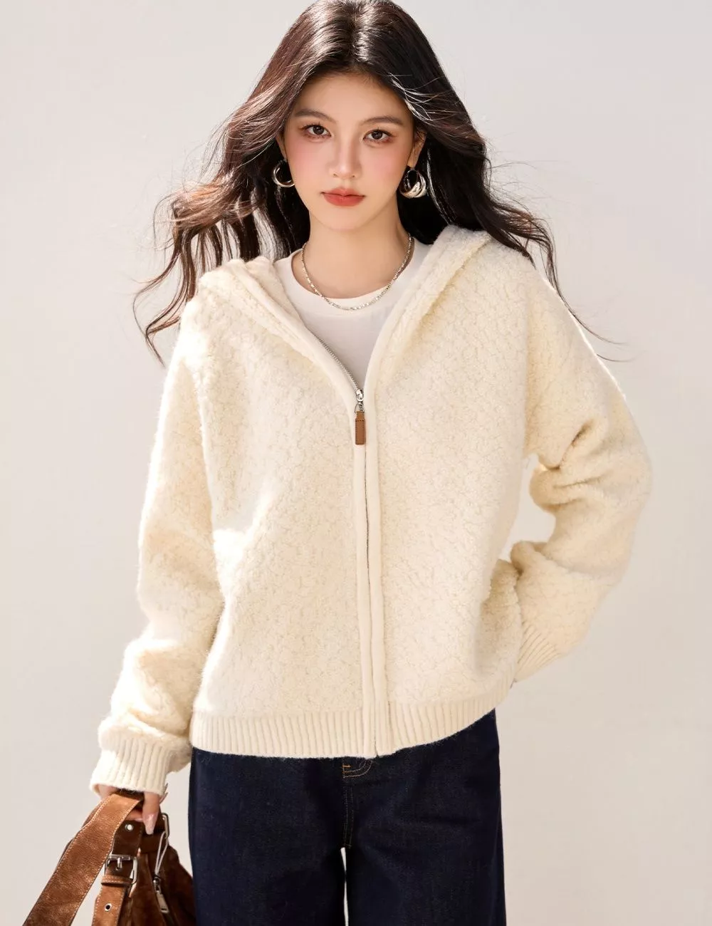 Cardigan Morbido Con Cappuccio Look Casual Elegante Donna Albicocca CF60110